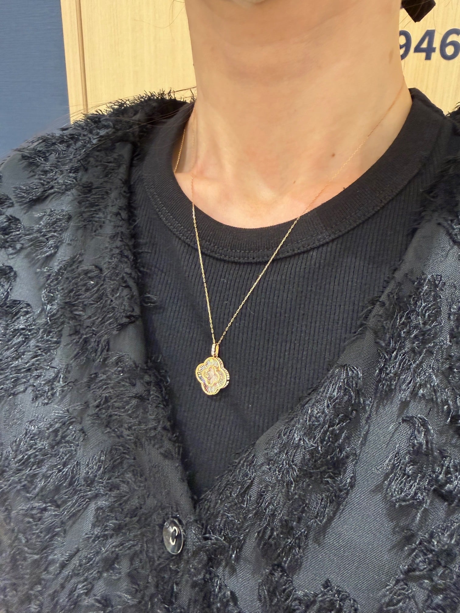 四葉のモチーフでバチカン部分にダイヤモンドが0.02ct使用されています。