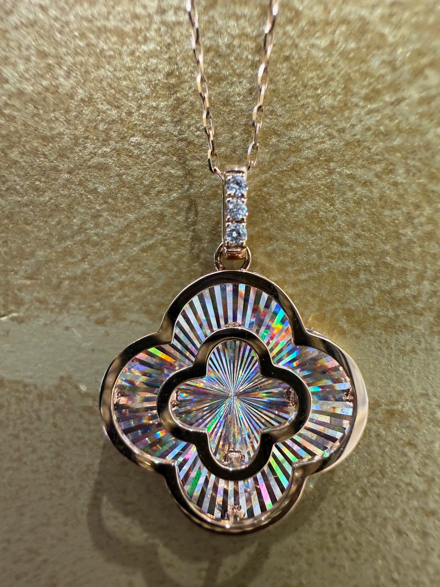 こちらはK18ピンクゴールドのレインボーカッティングのペンダントです。