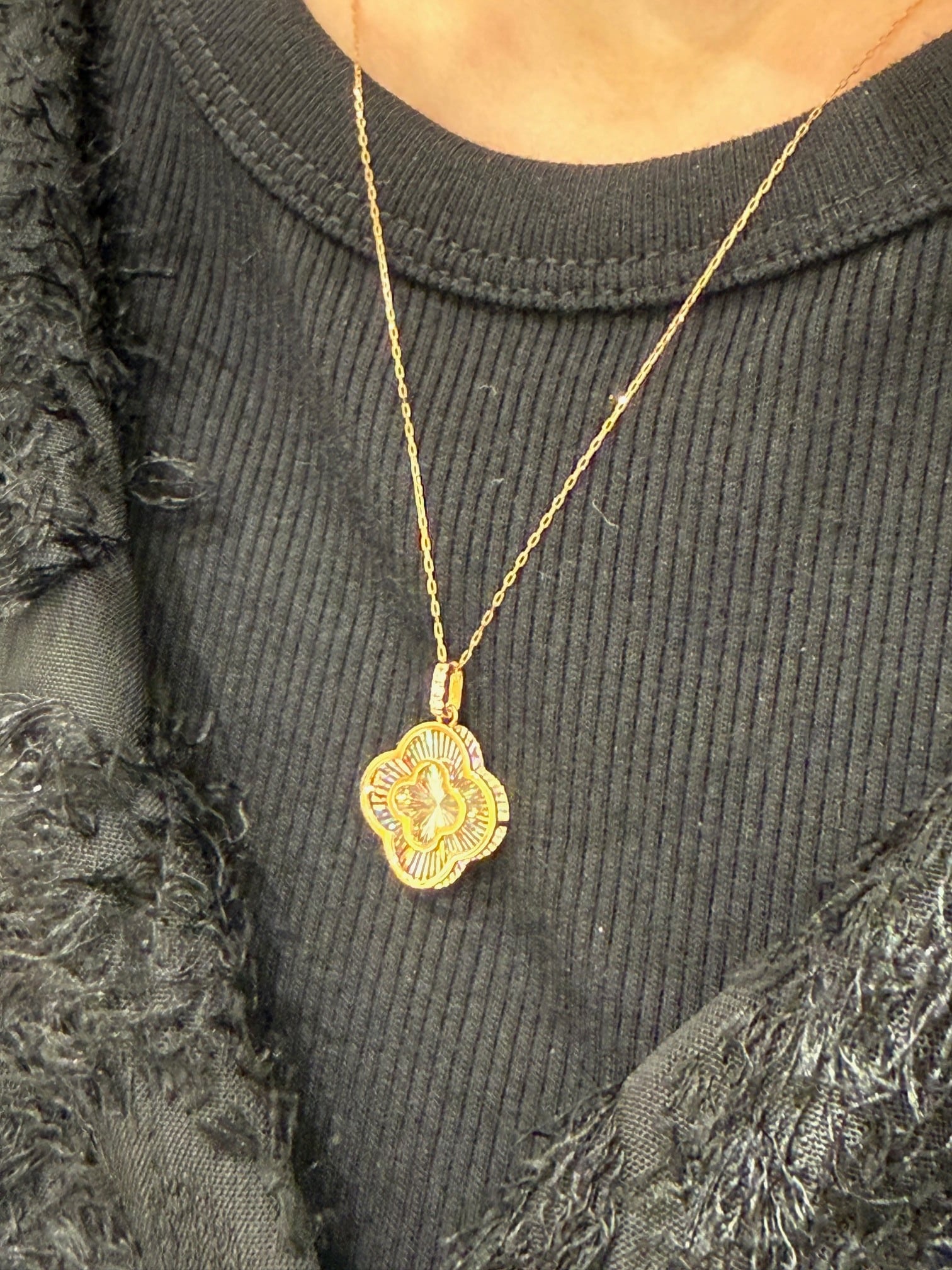 【在庫分】K18PGダイヤレインボーカッティング四つ葉モチーフペンダント