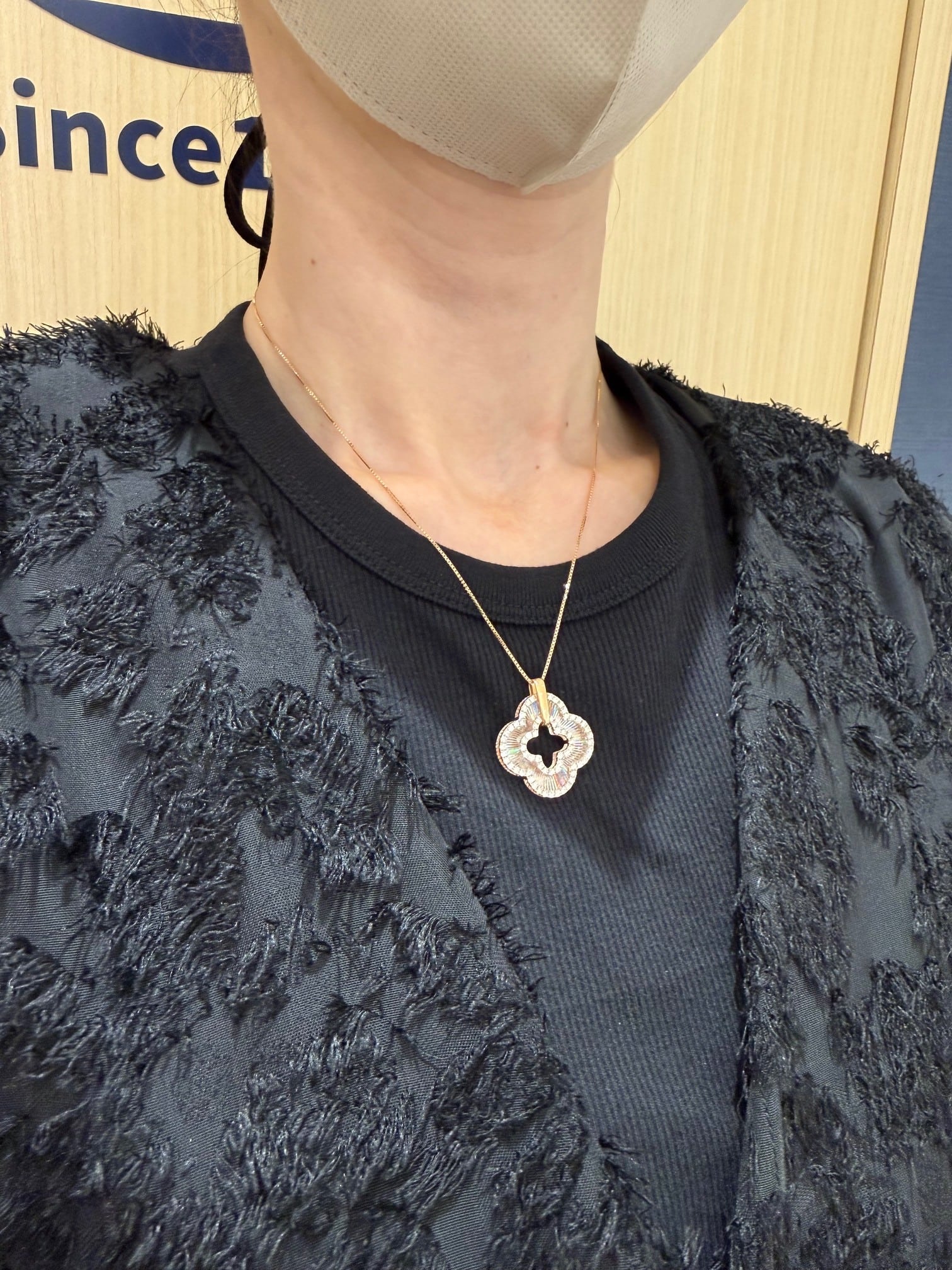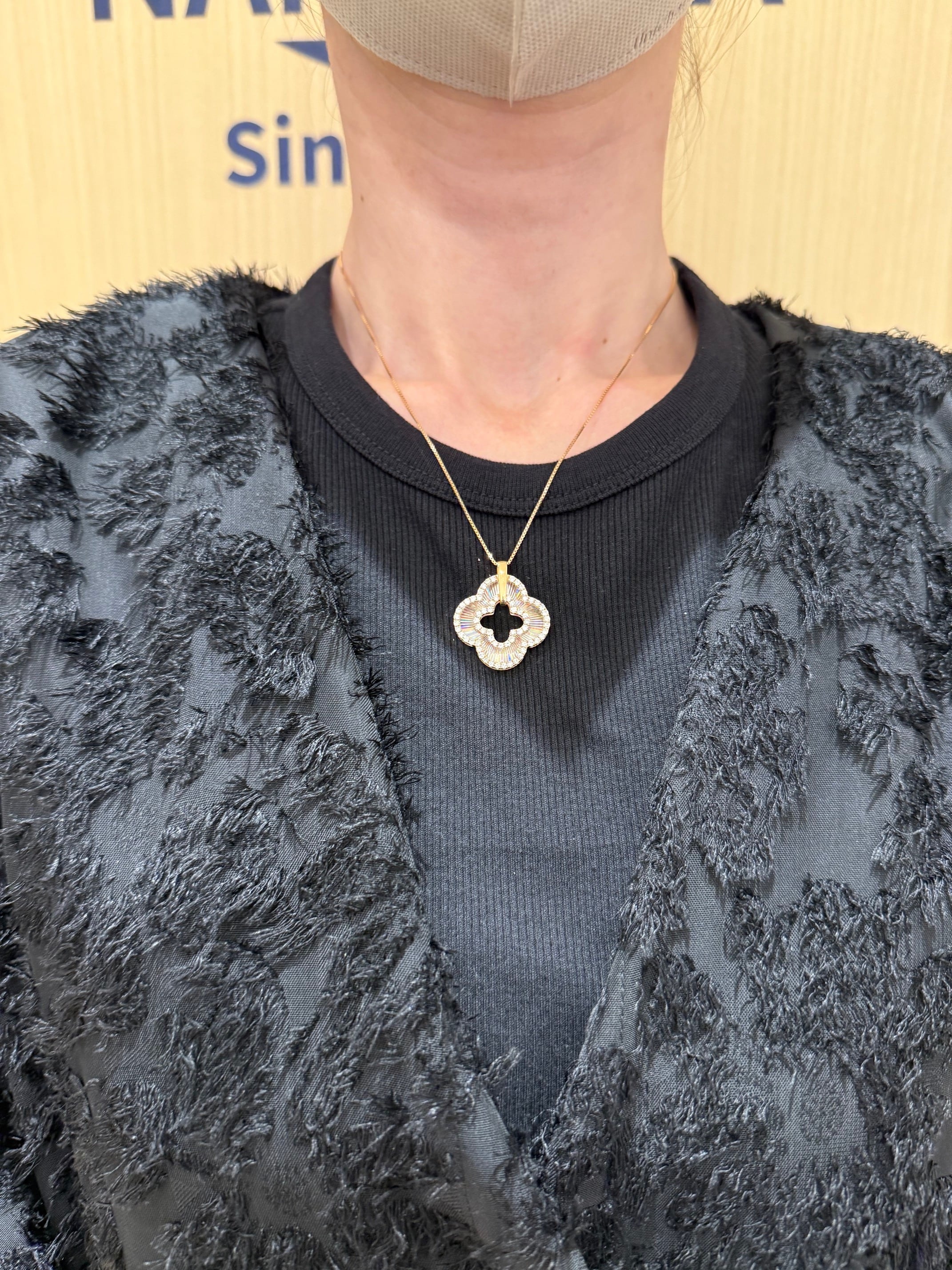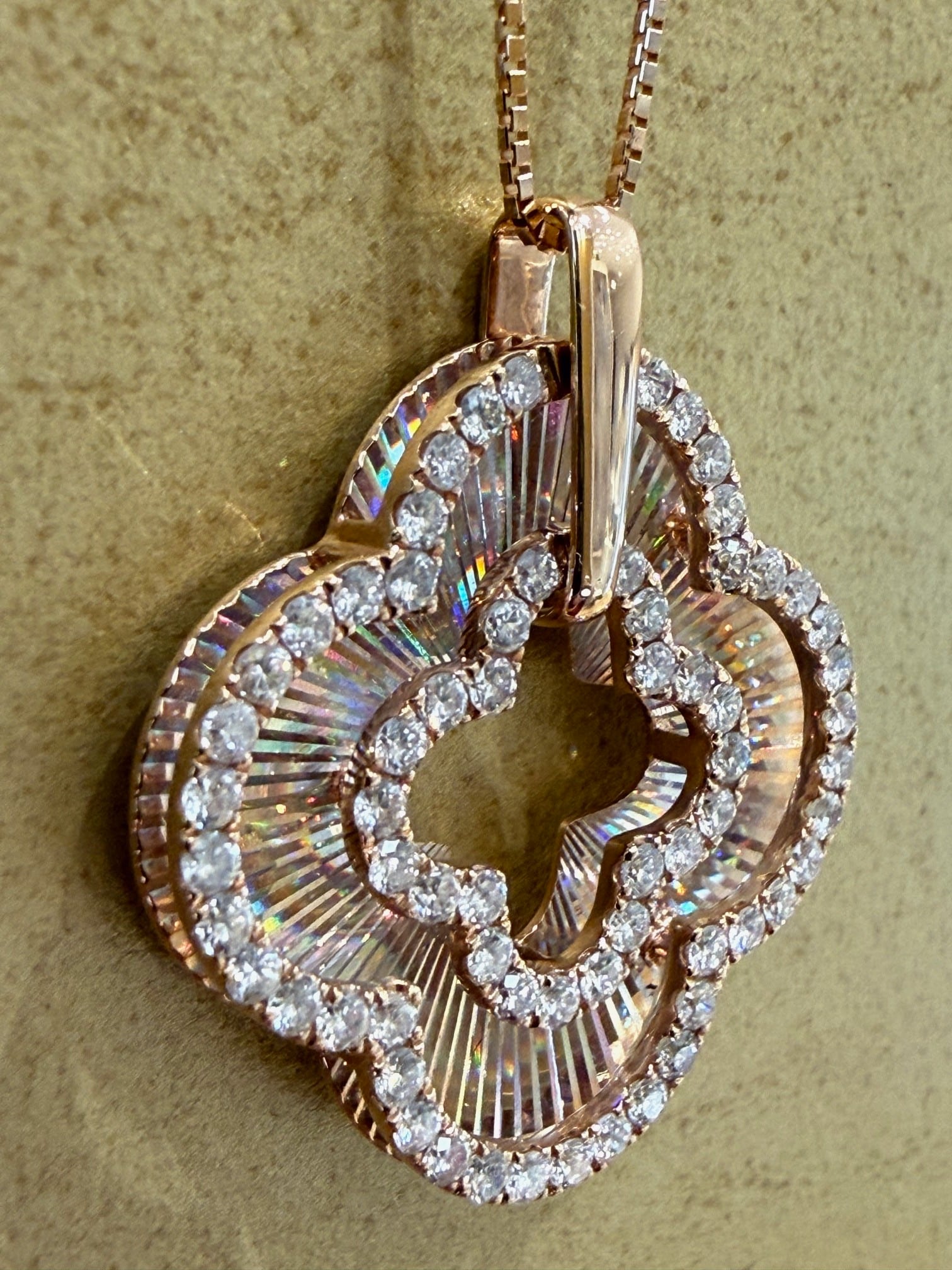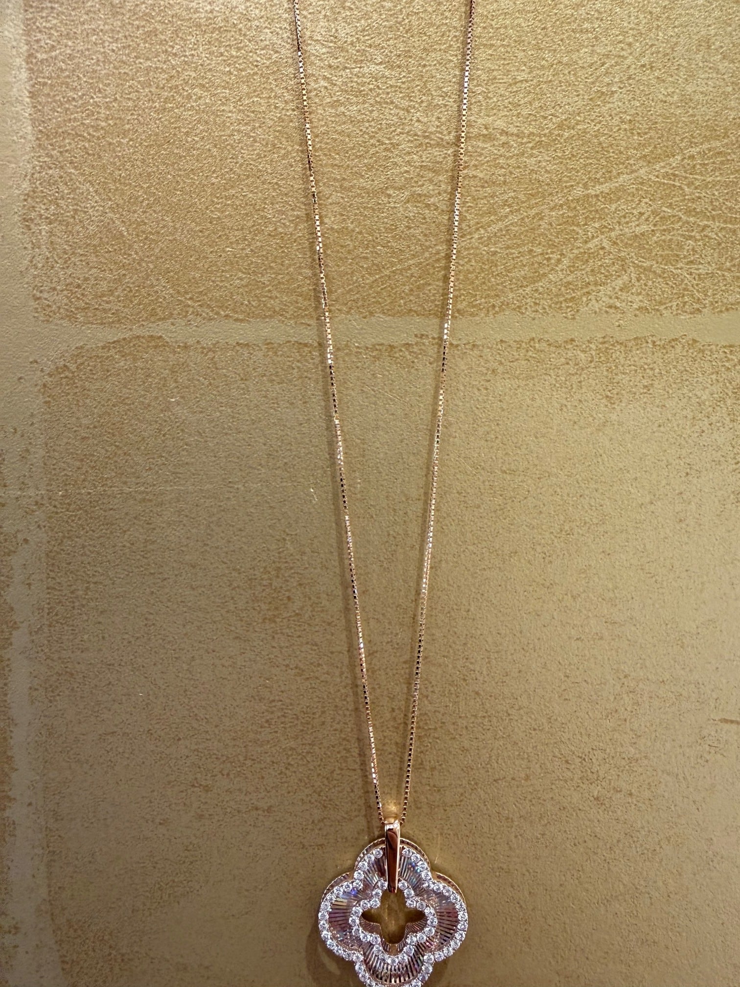 こちらはK18PGのレインボーカッティングの四葉モチーフのペンダントです。