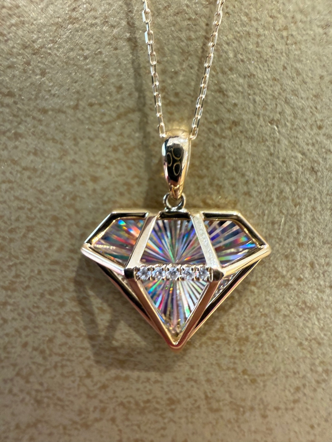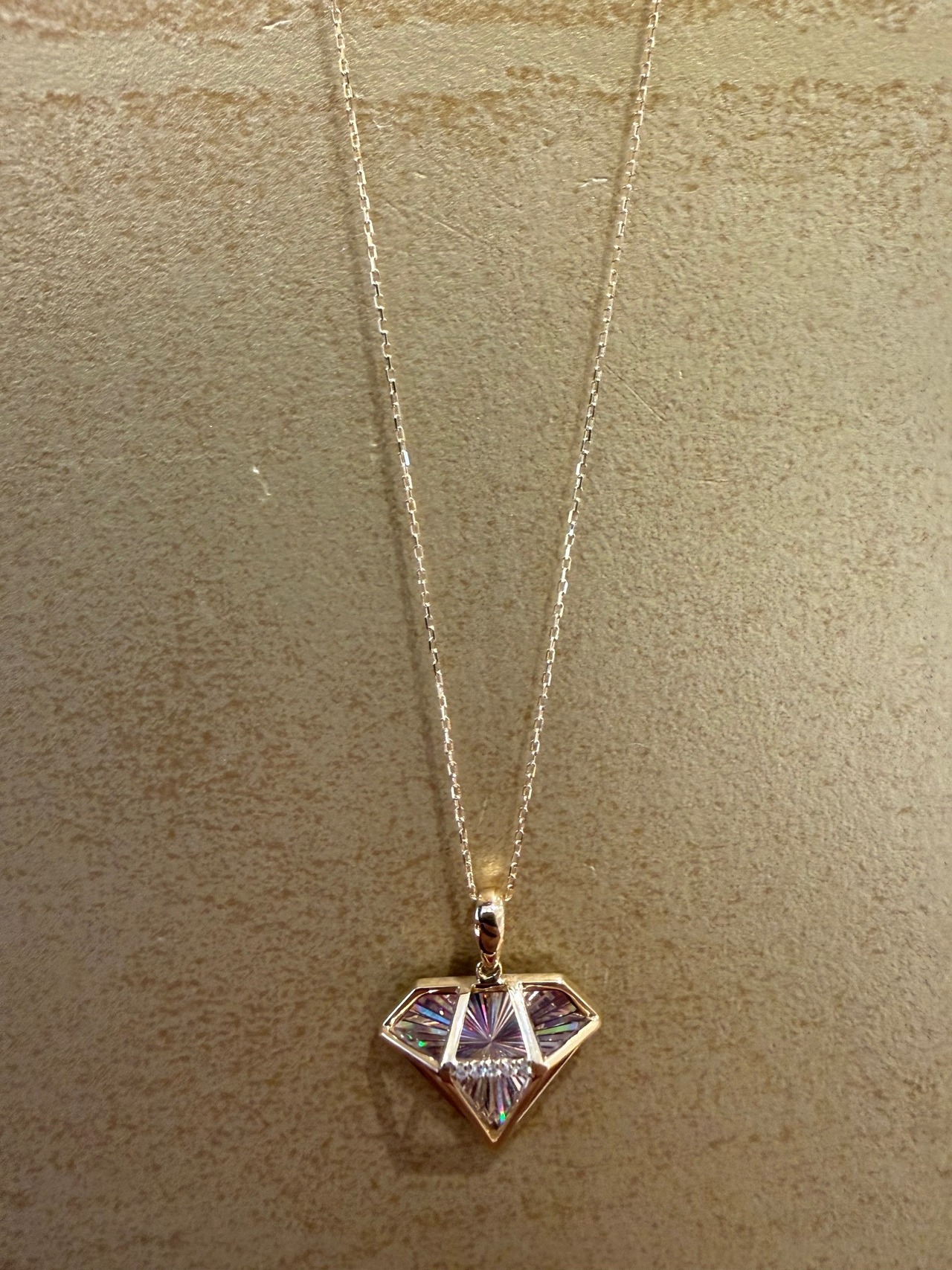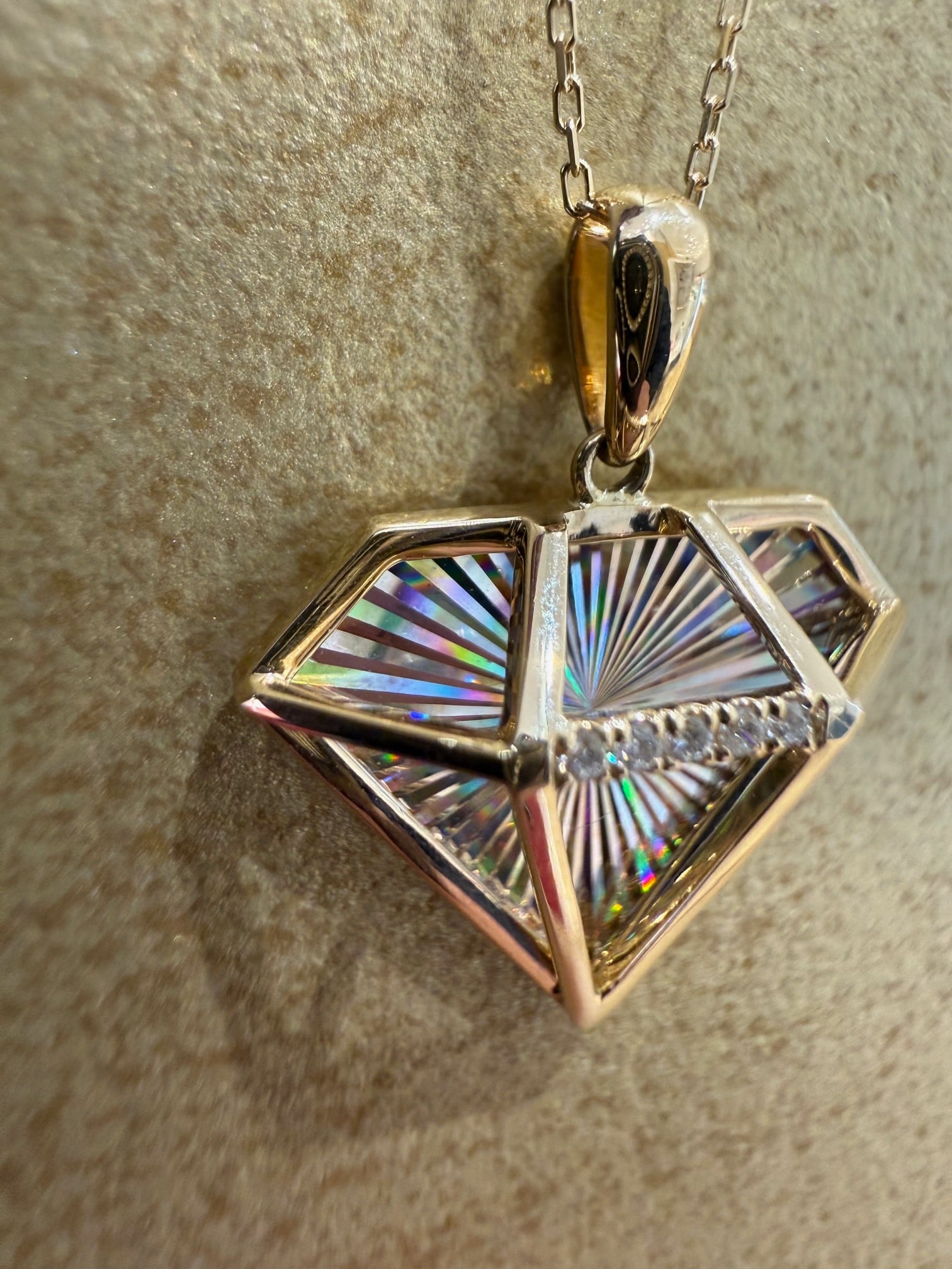 こちらはK18イエローゴールドのレインボーカッティングのダイヤモチーフのデザインのペンダントです。