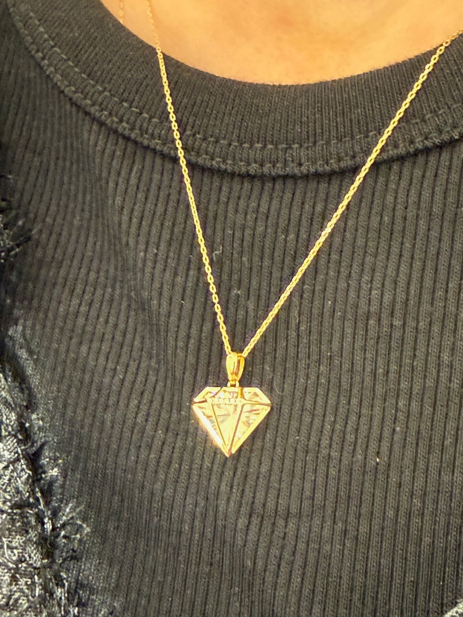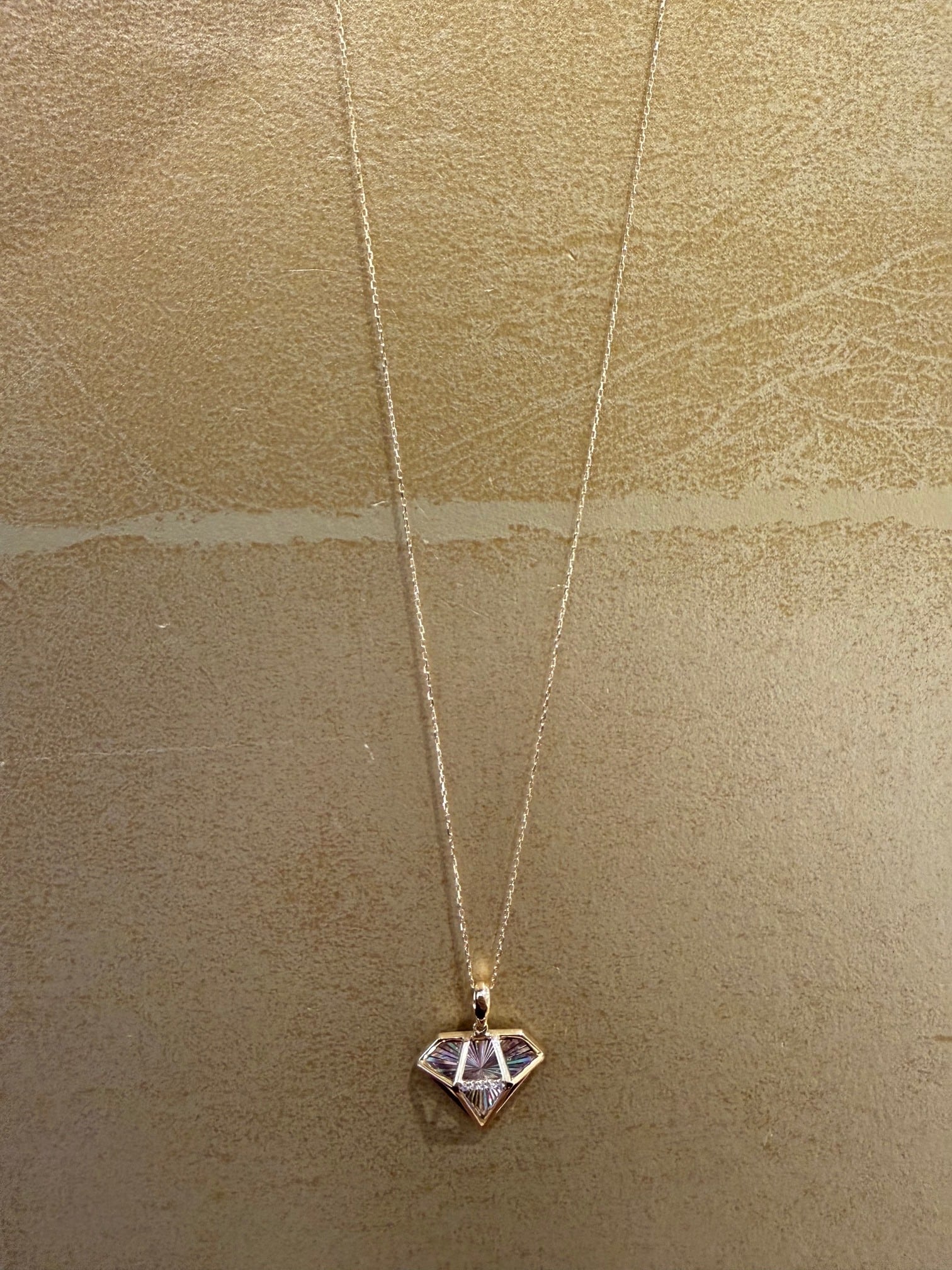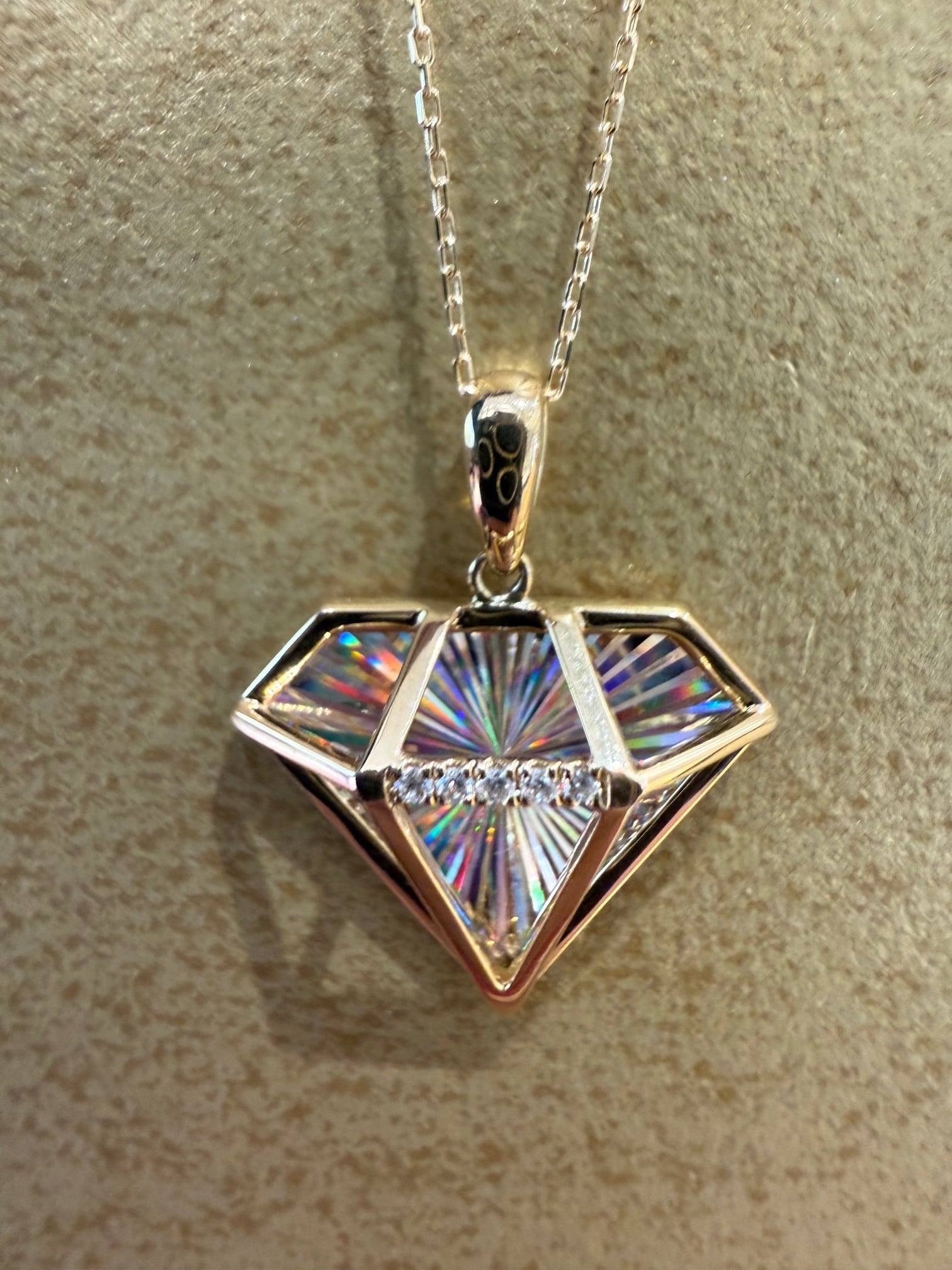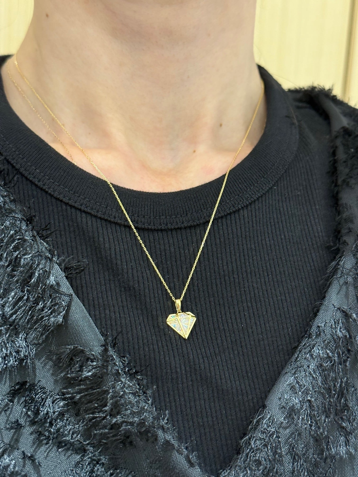 こちらはK18イエローゴールドのレインボーカッティングのダイヤモチーフのデザインのペンダントです。