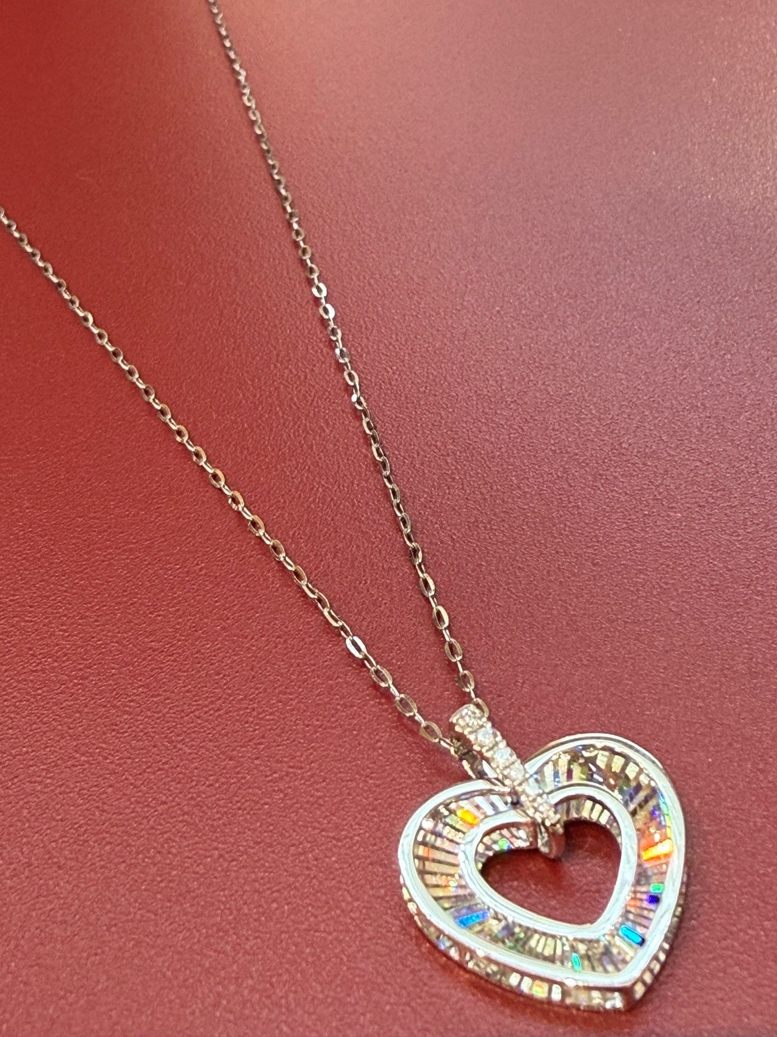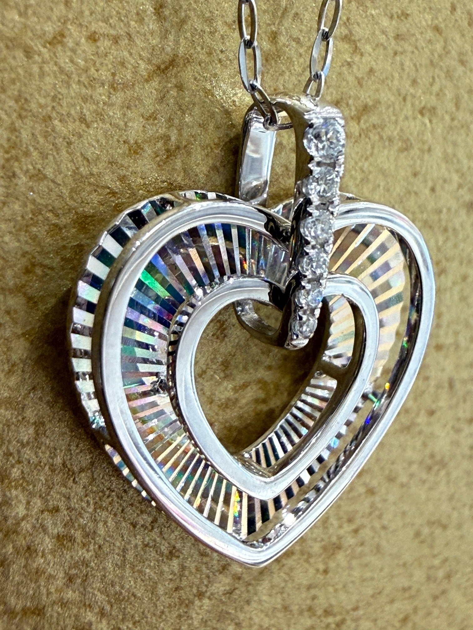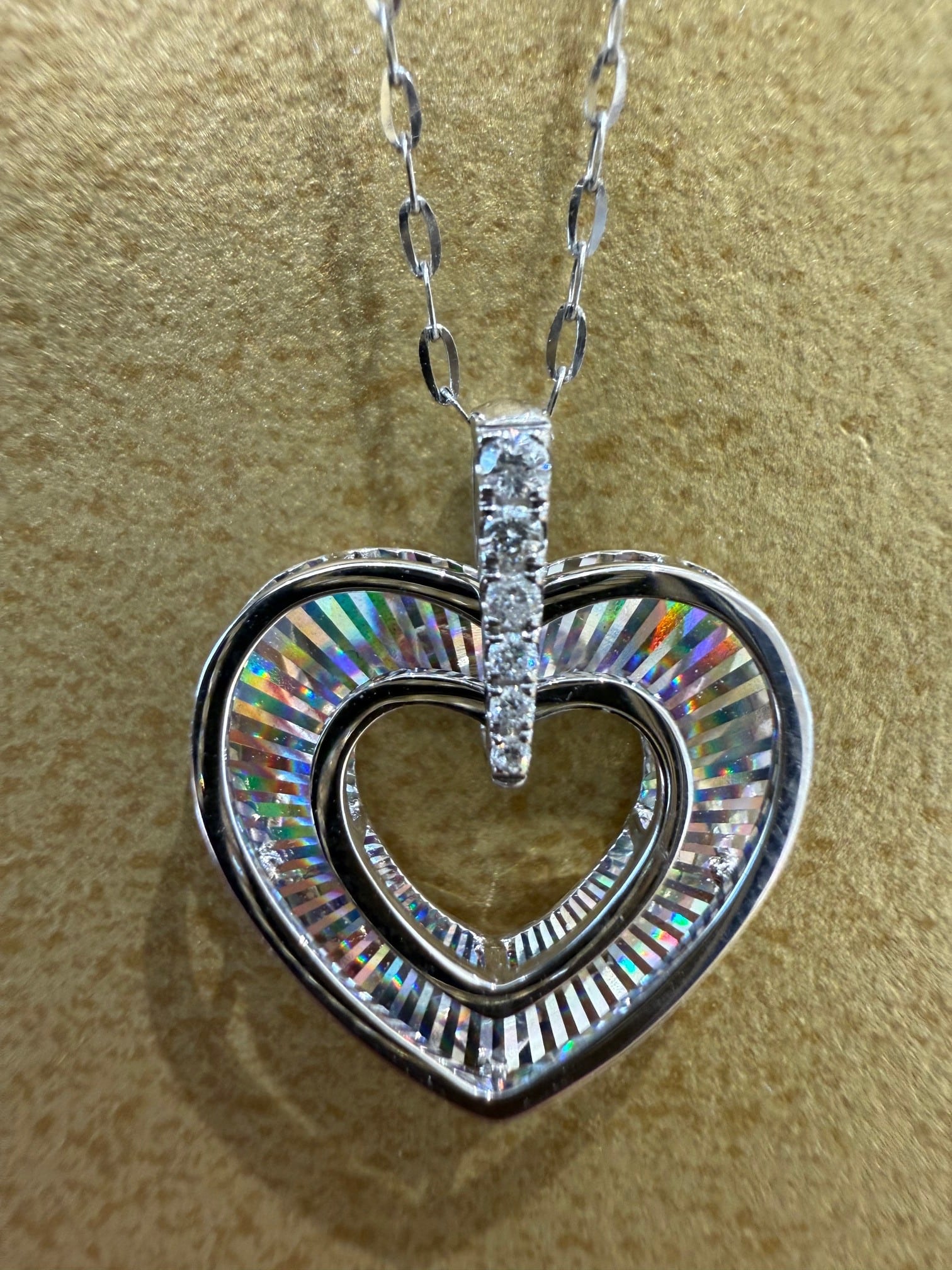 こちらはK18ホワイトゴールドのハートモチーフのレインボーカッティングペンダントです。