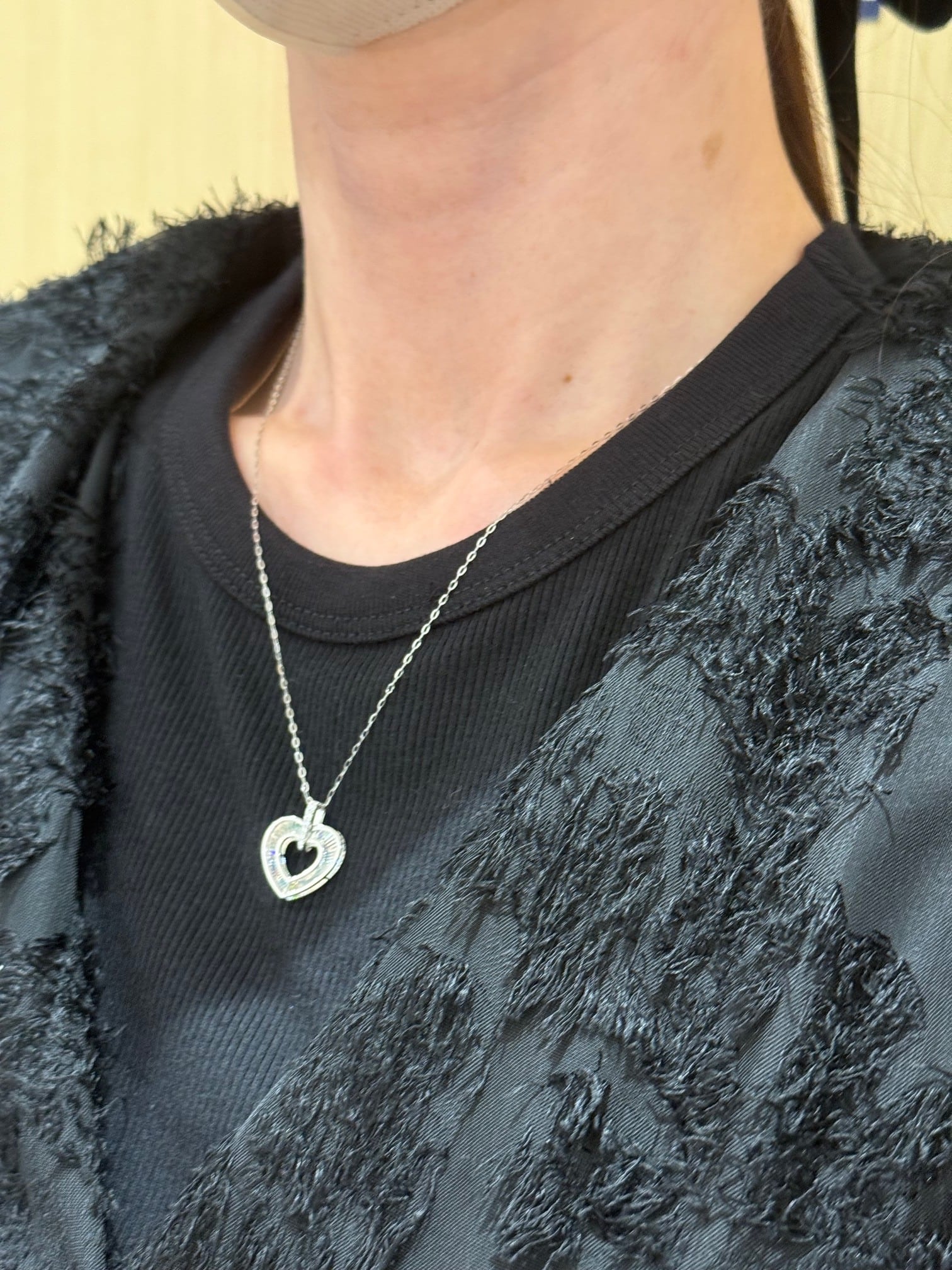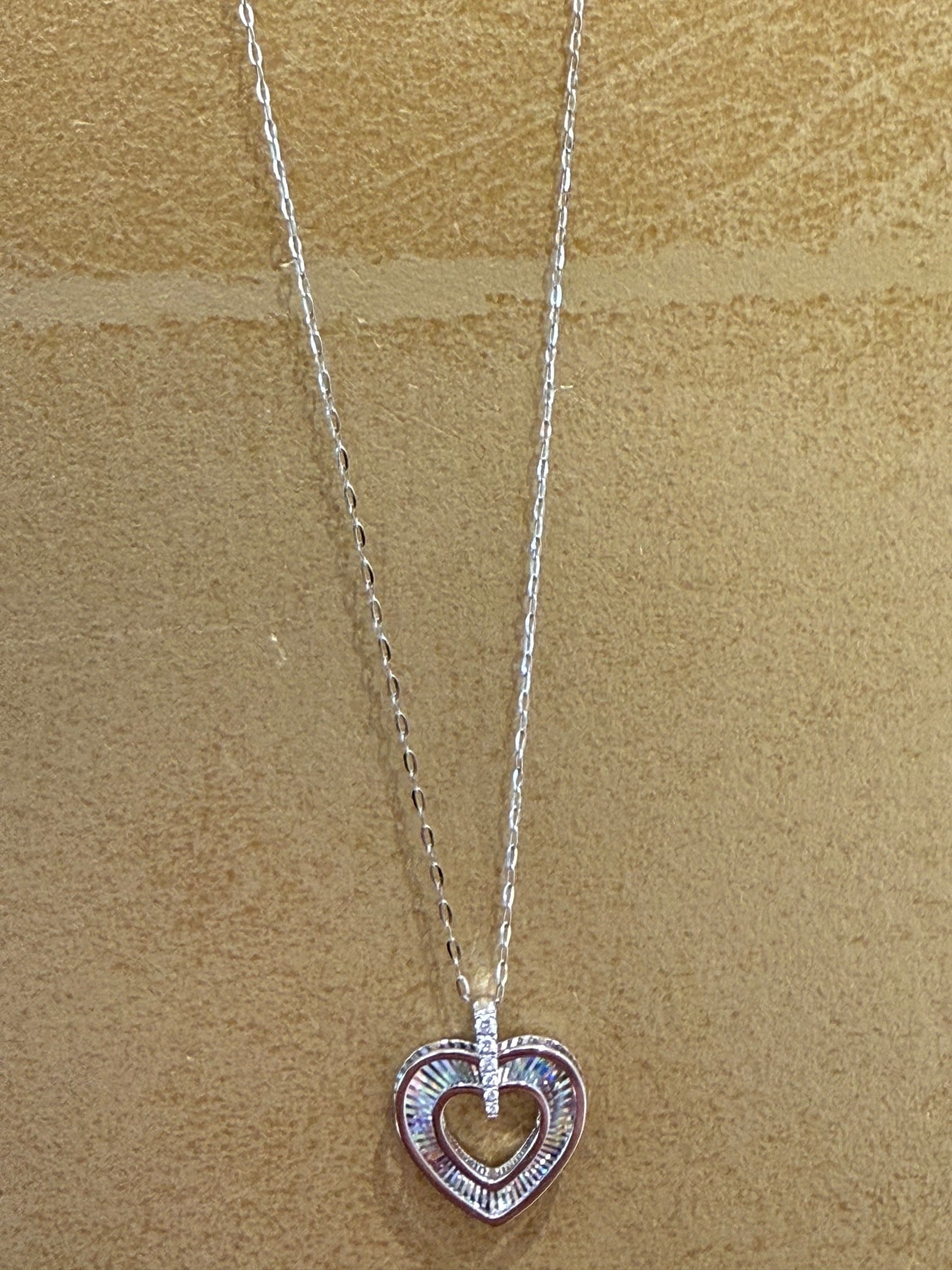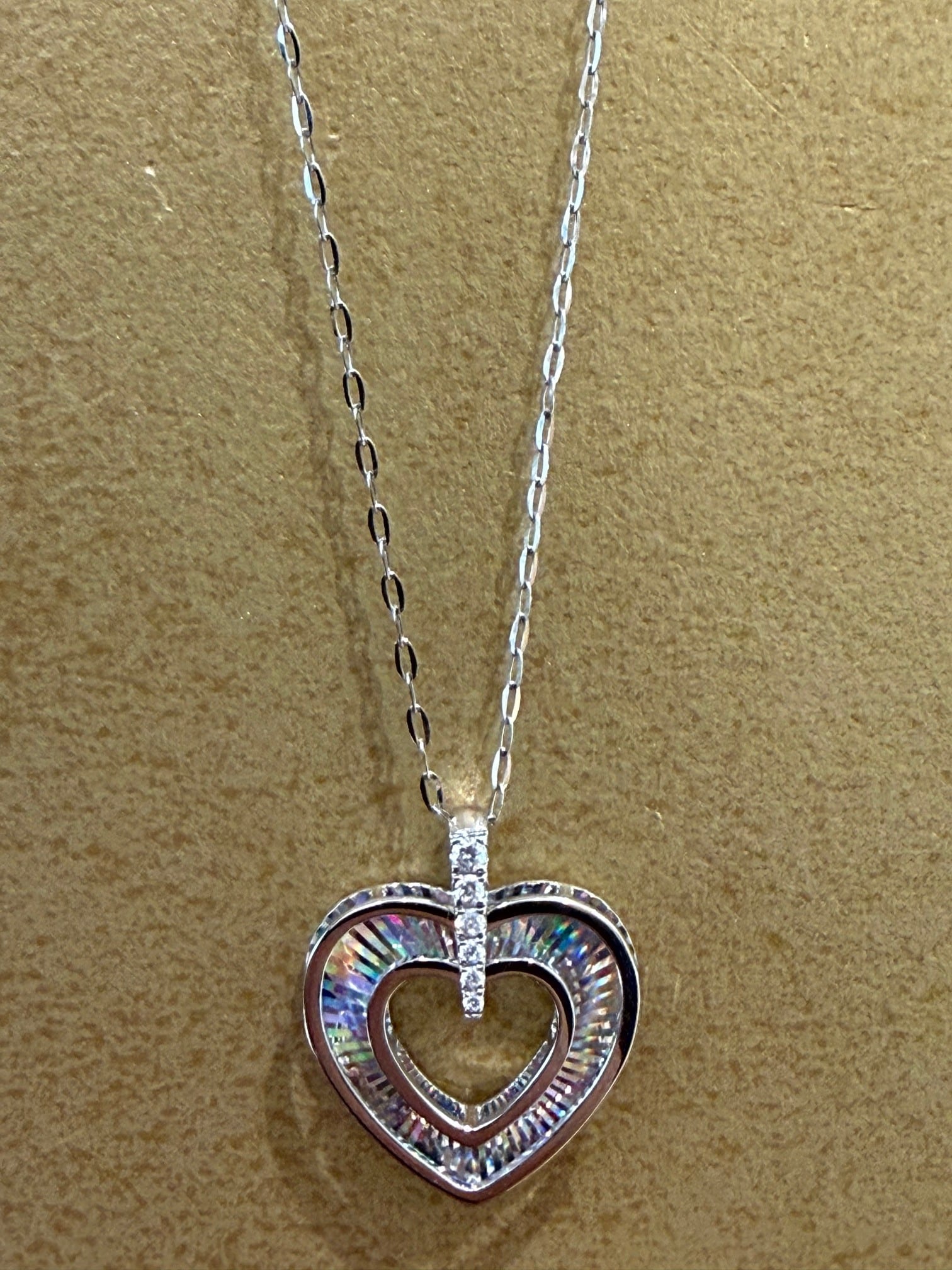 こちらはK18ホワイトゴールドのハートモチーフのレインボーカッティングペンダントです。