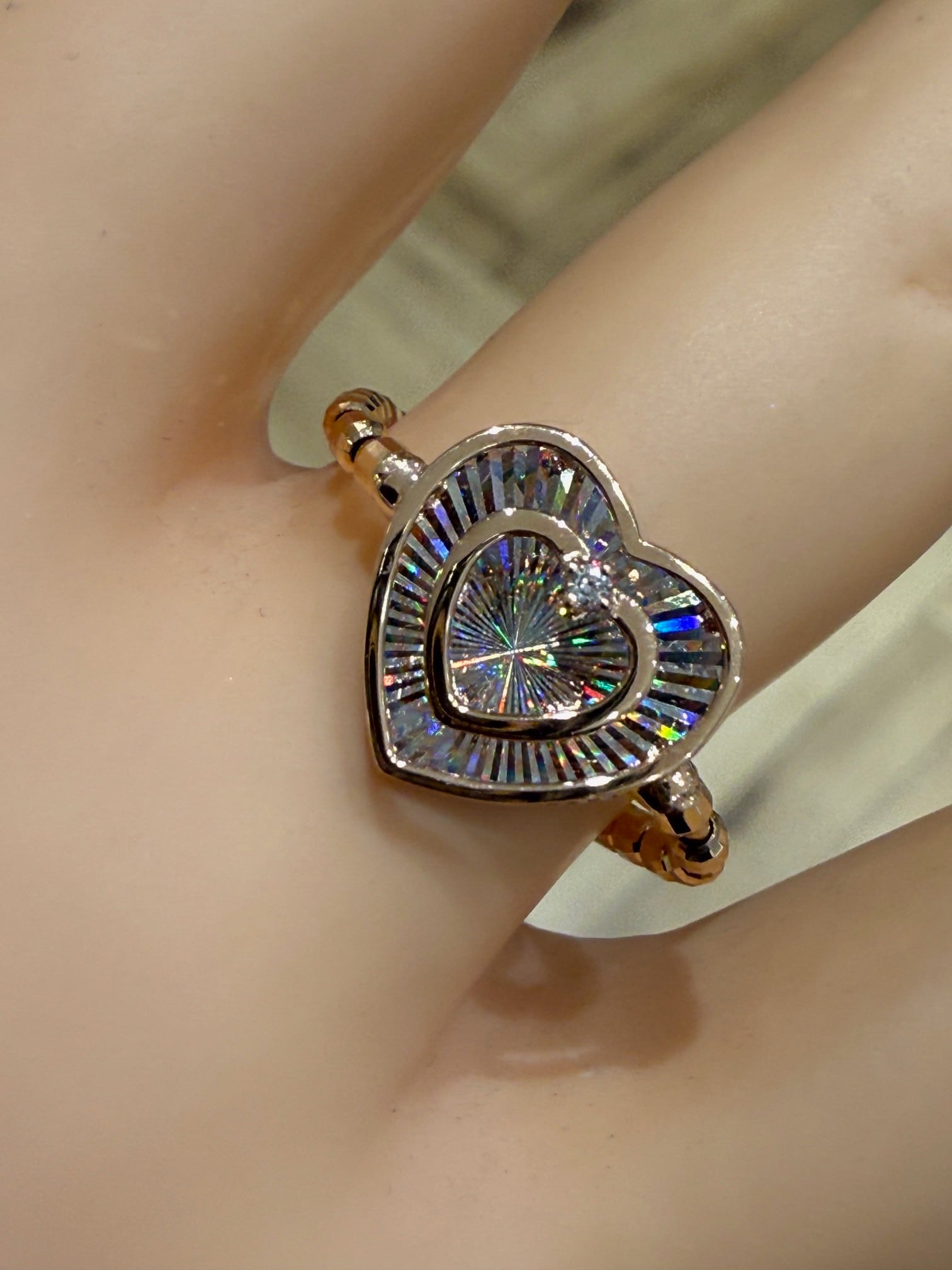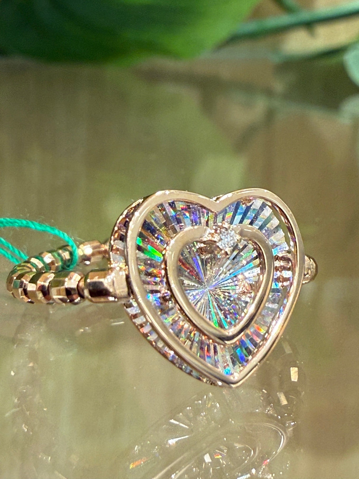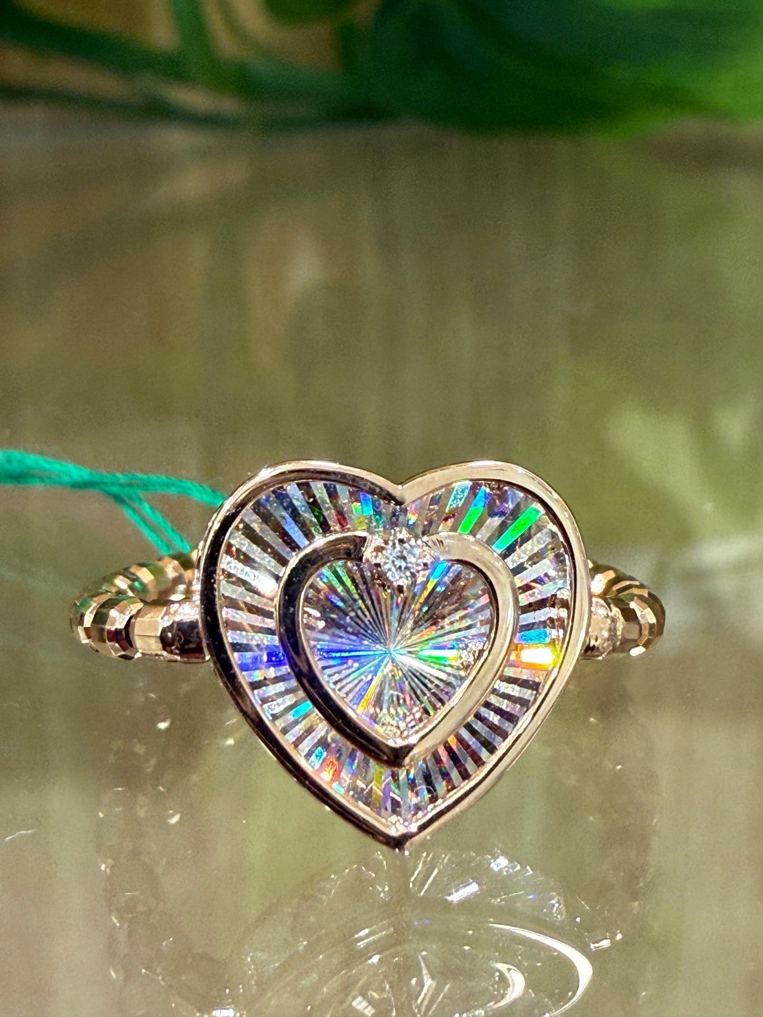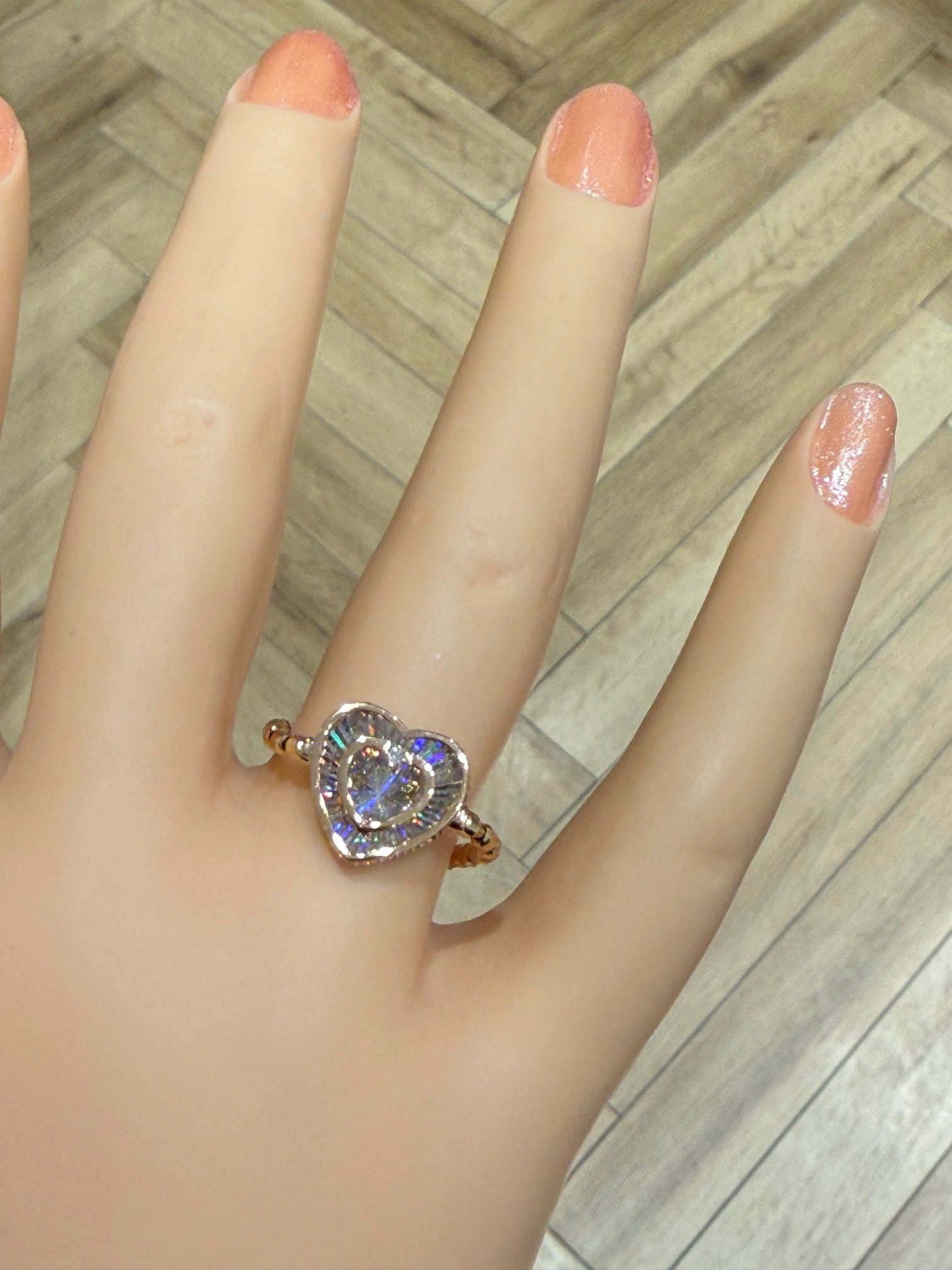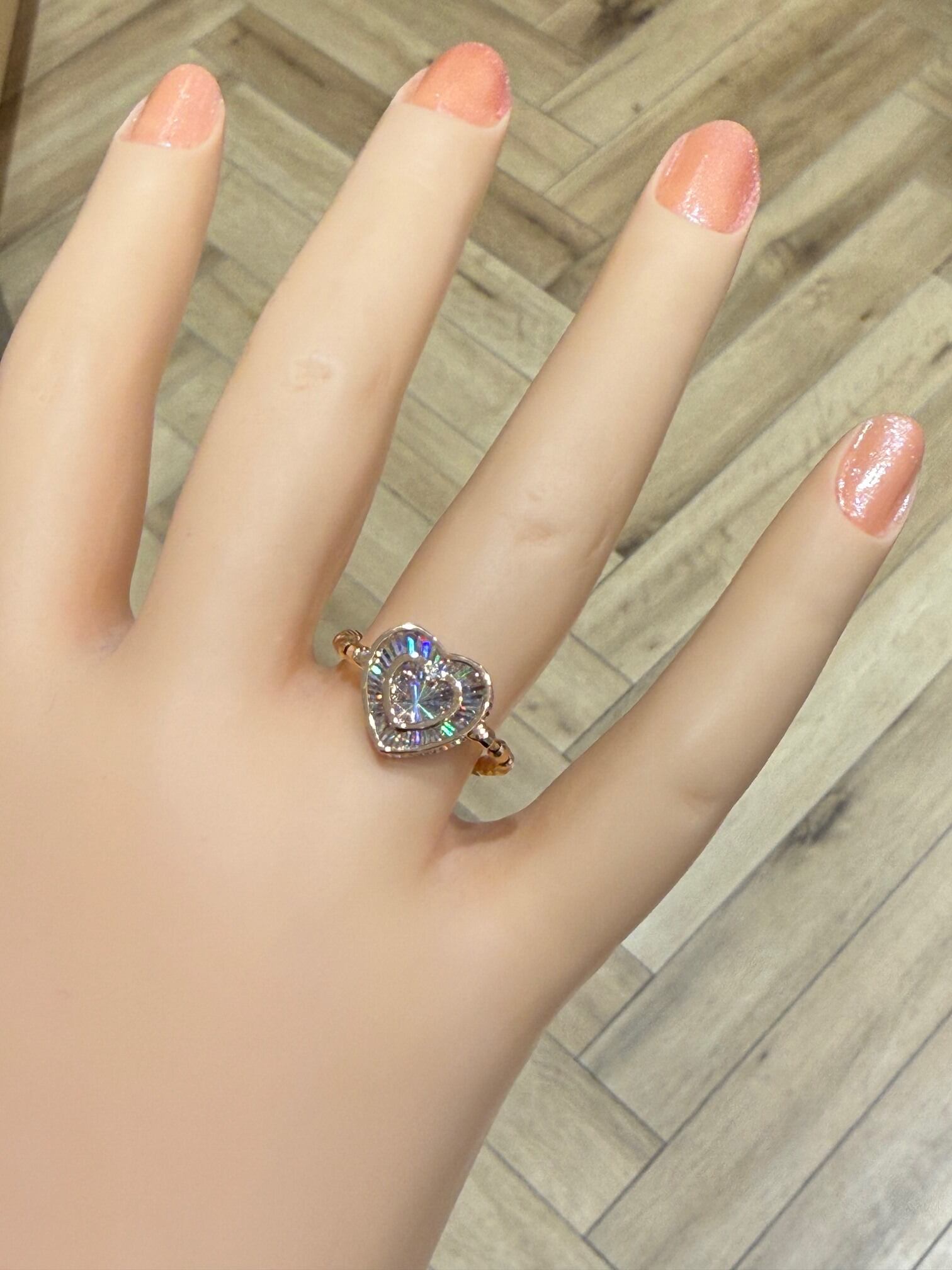 こちらはK18ピンクゴールドのレインボーカッティングハートモチーフリングです。