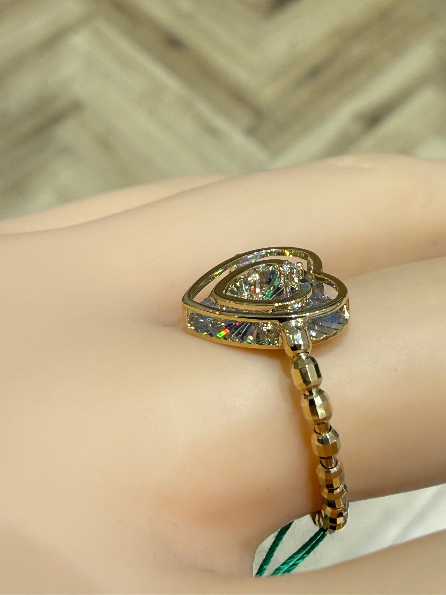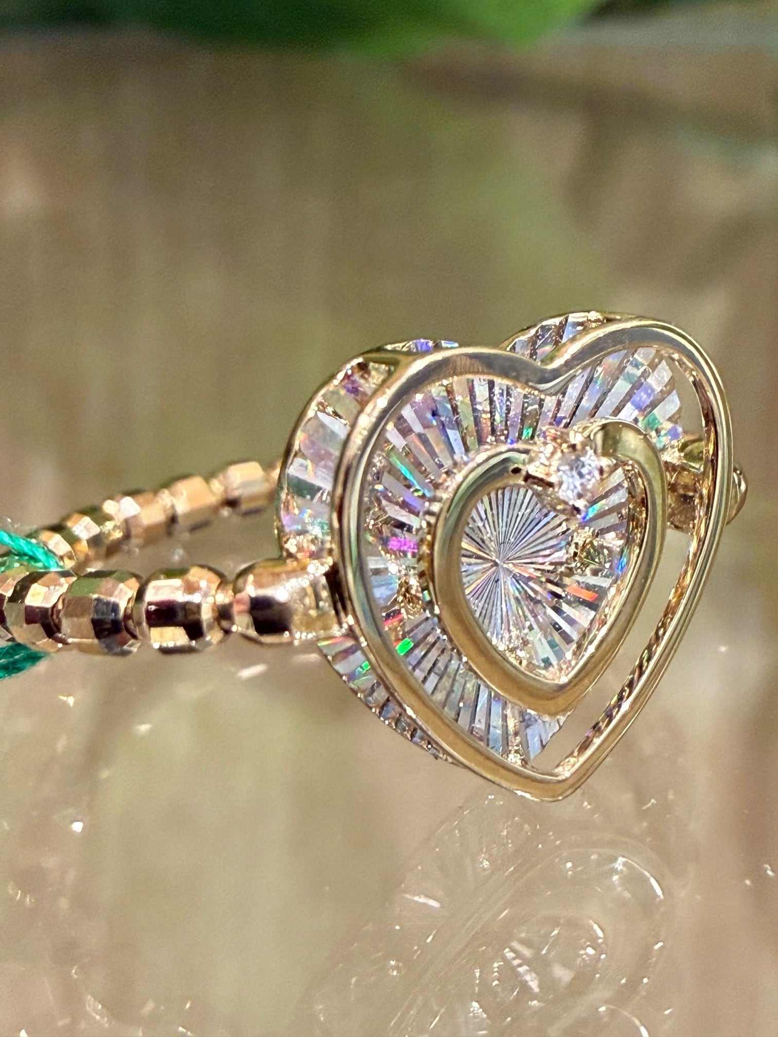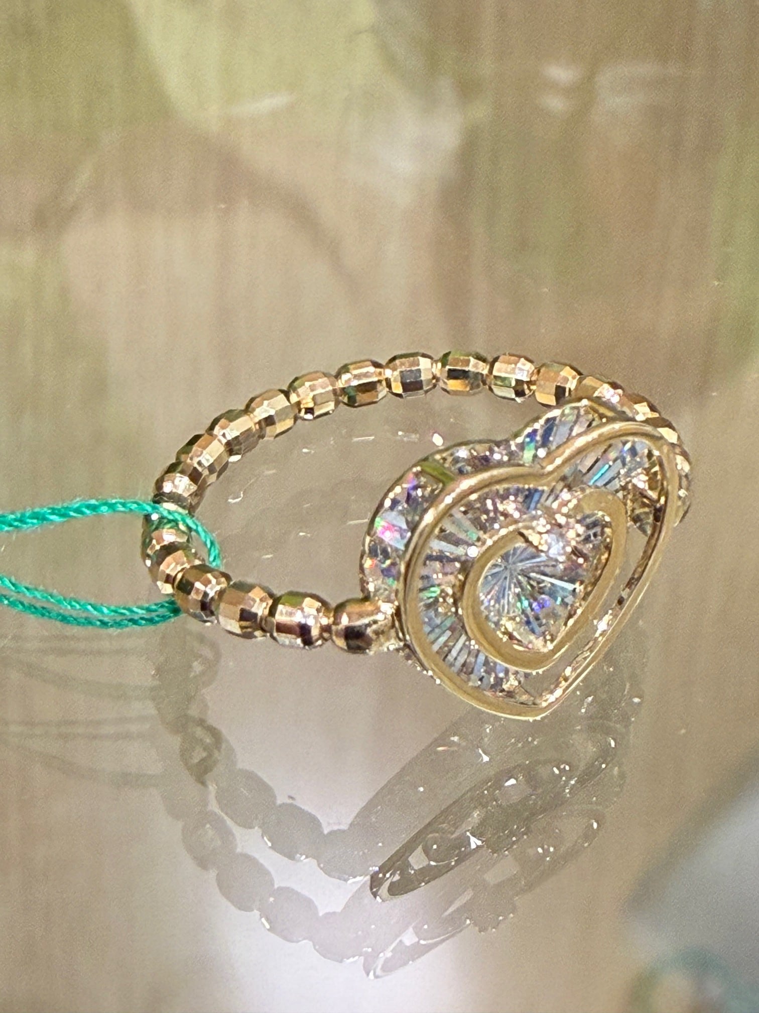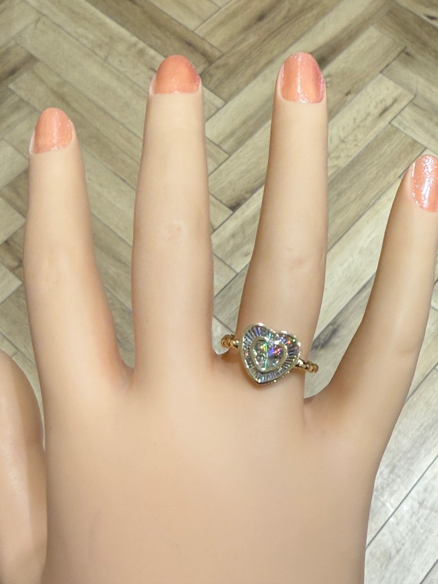 こちらはK18イエローゴールドのレインボーカッティングハートモチーフリングです。