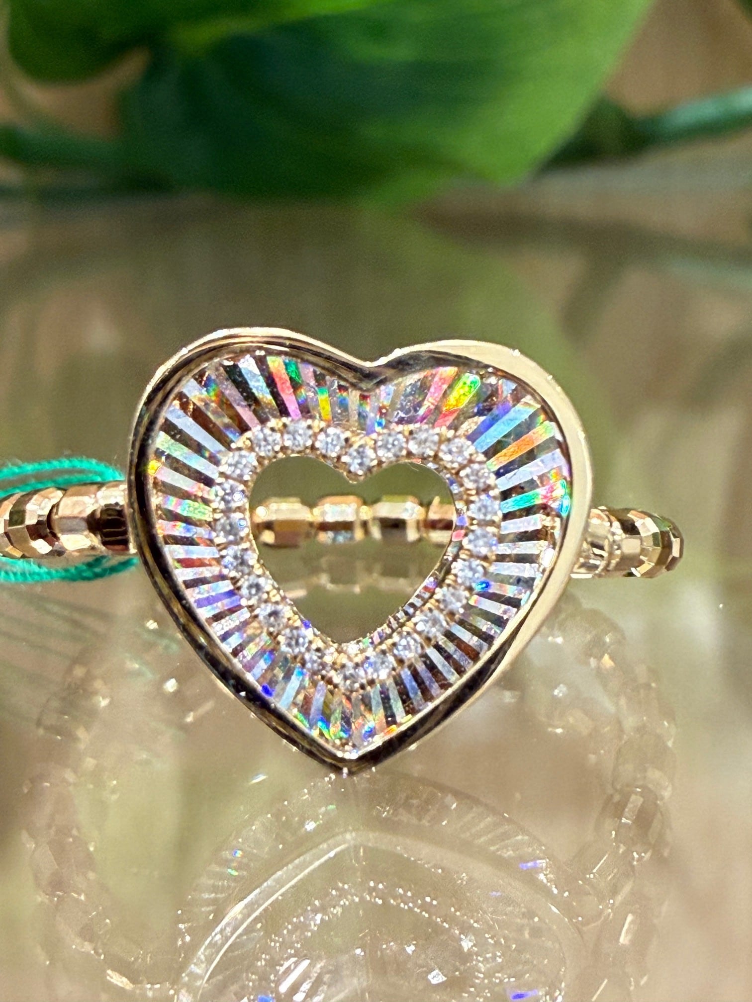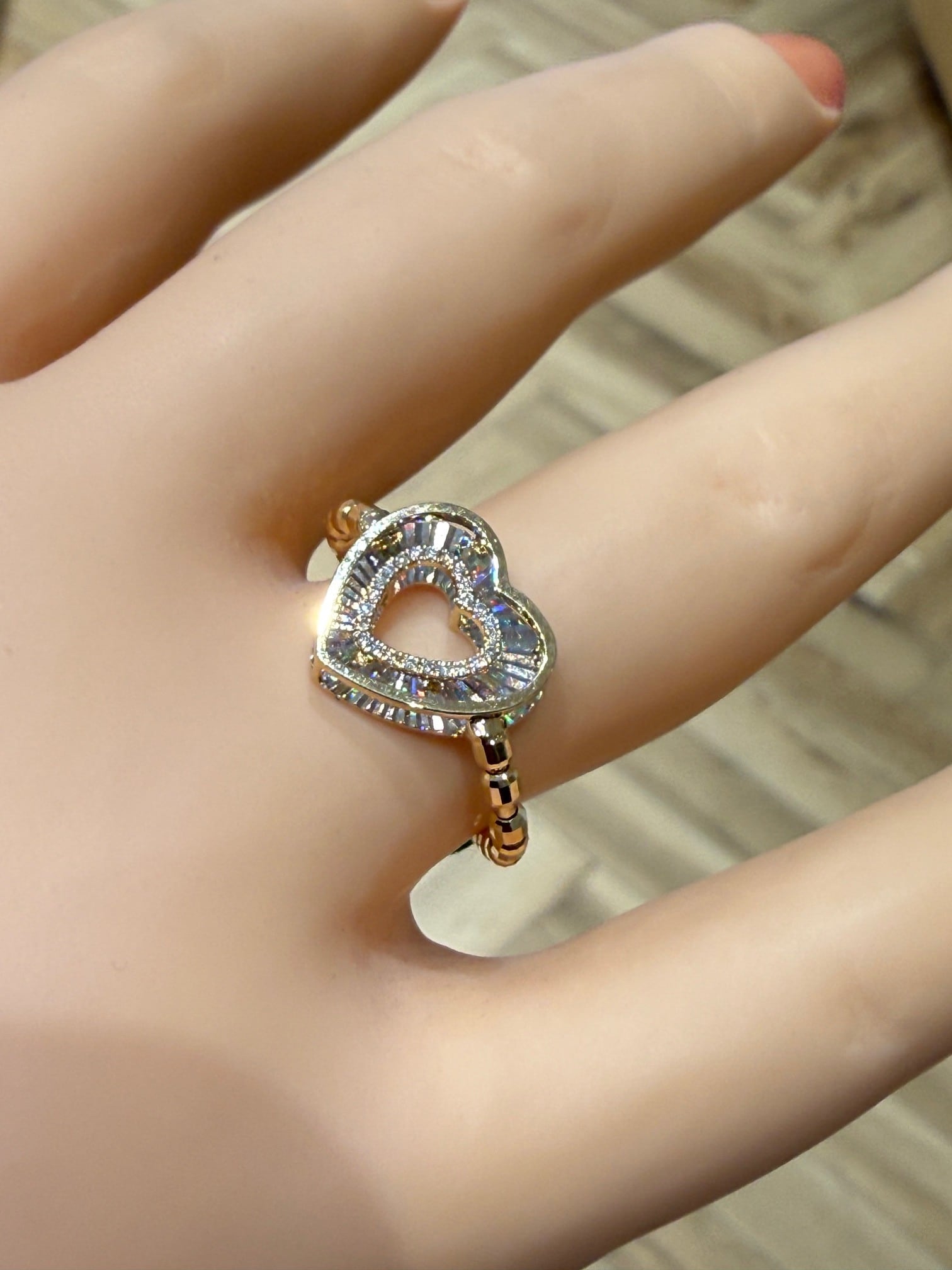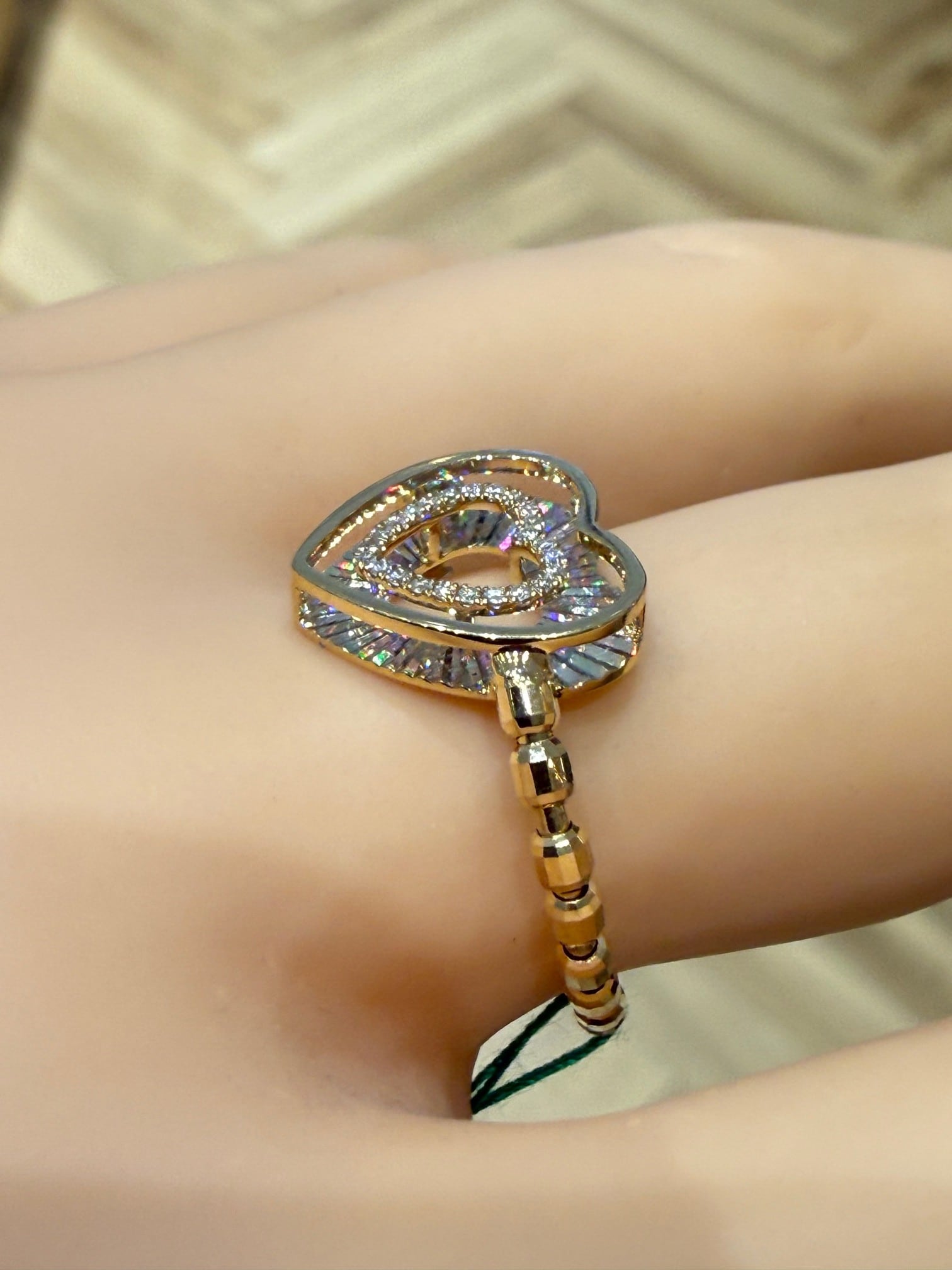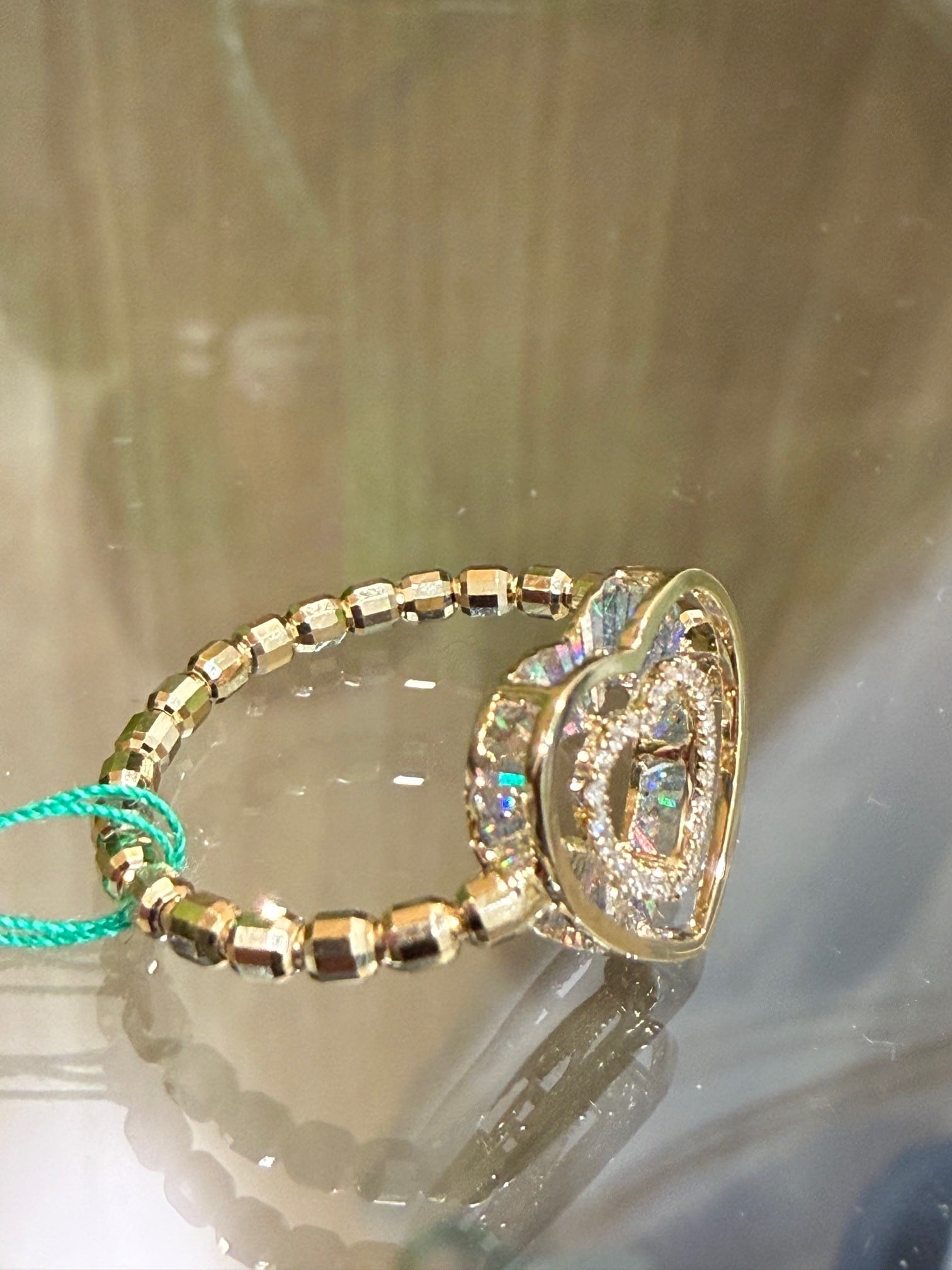 こちらはK18イエローゴールドのレインボーカッティングハートモチーフリングです。