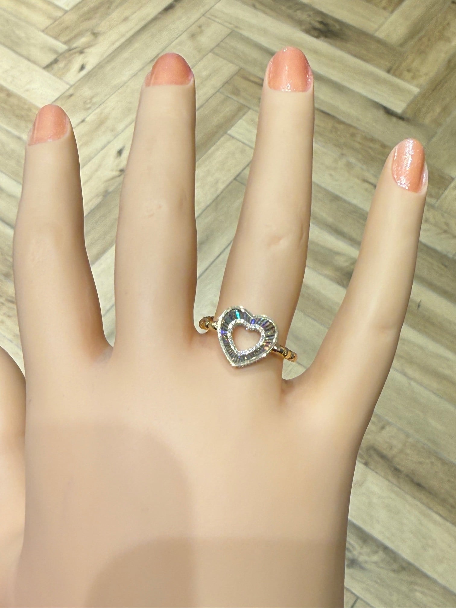 【在庫分】K18YGレインボーカッティングダイヤモンドリング ハート フリーサイズ