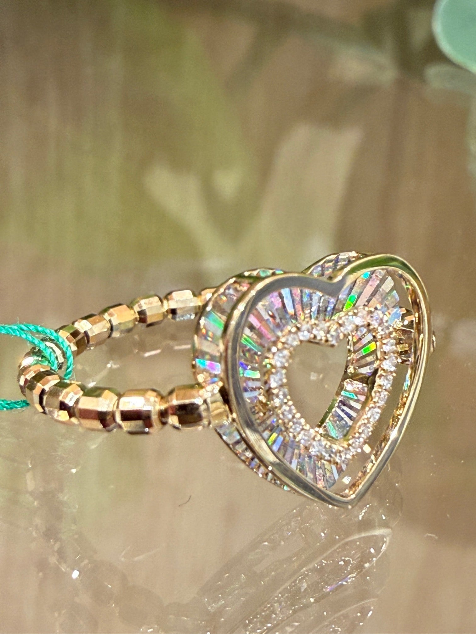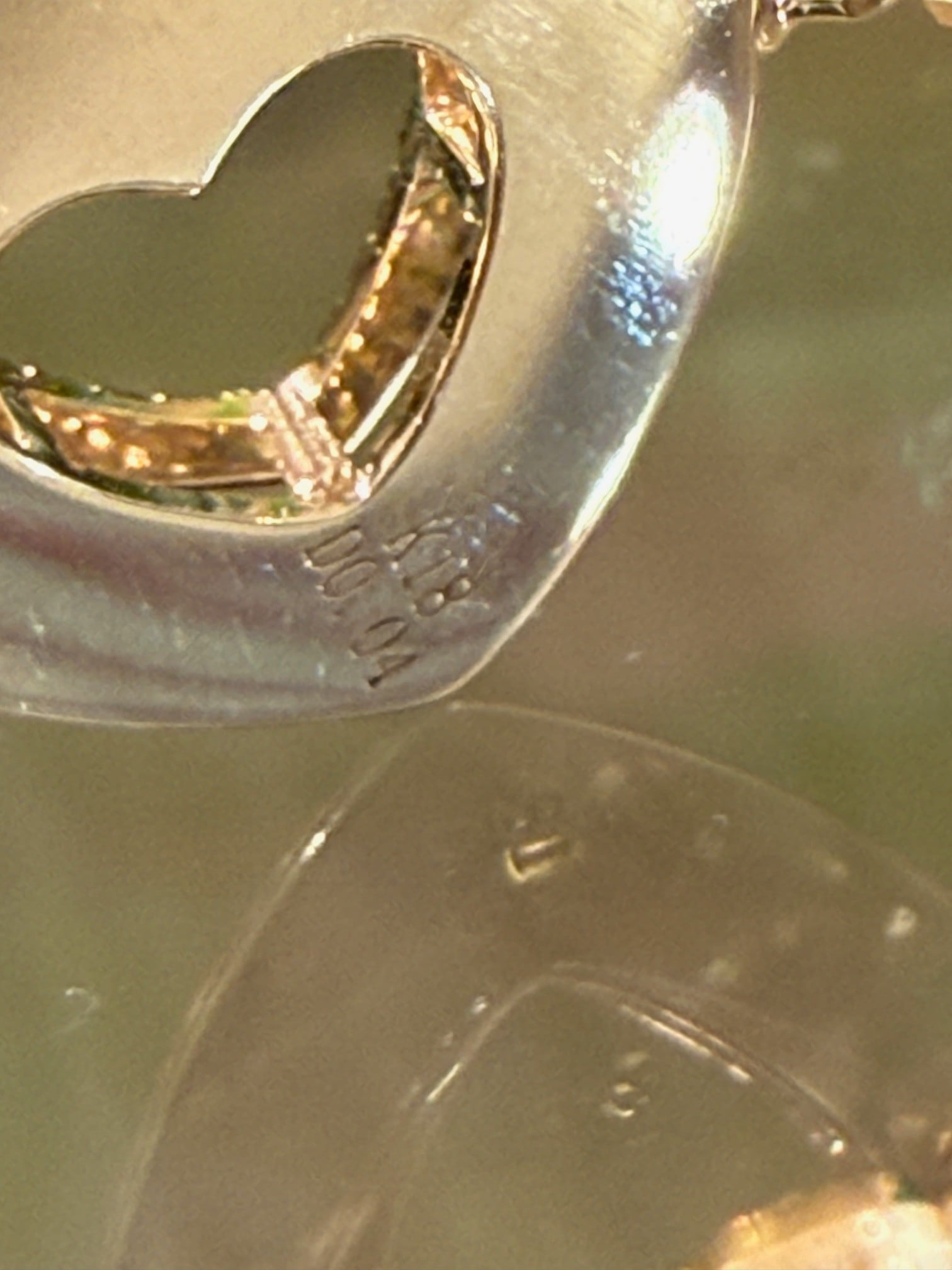 内側のハートのデザインにダイヤモンドを一周あしらっております。