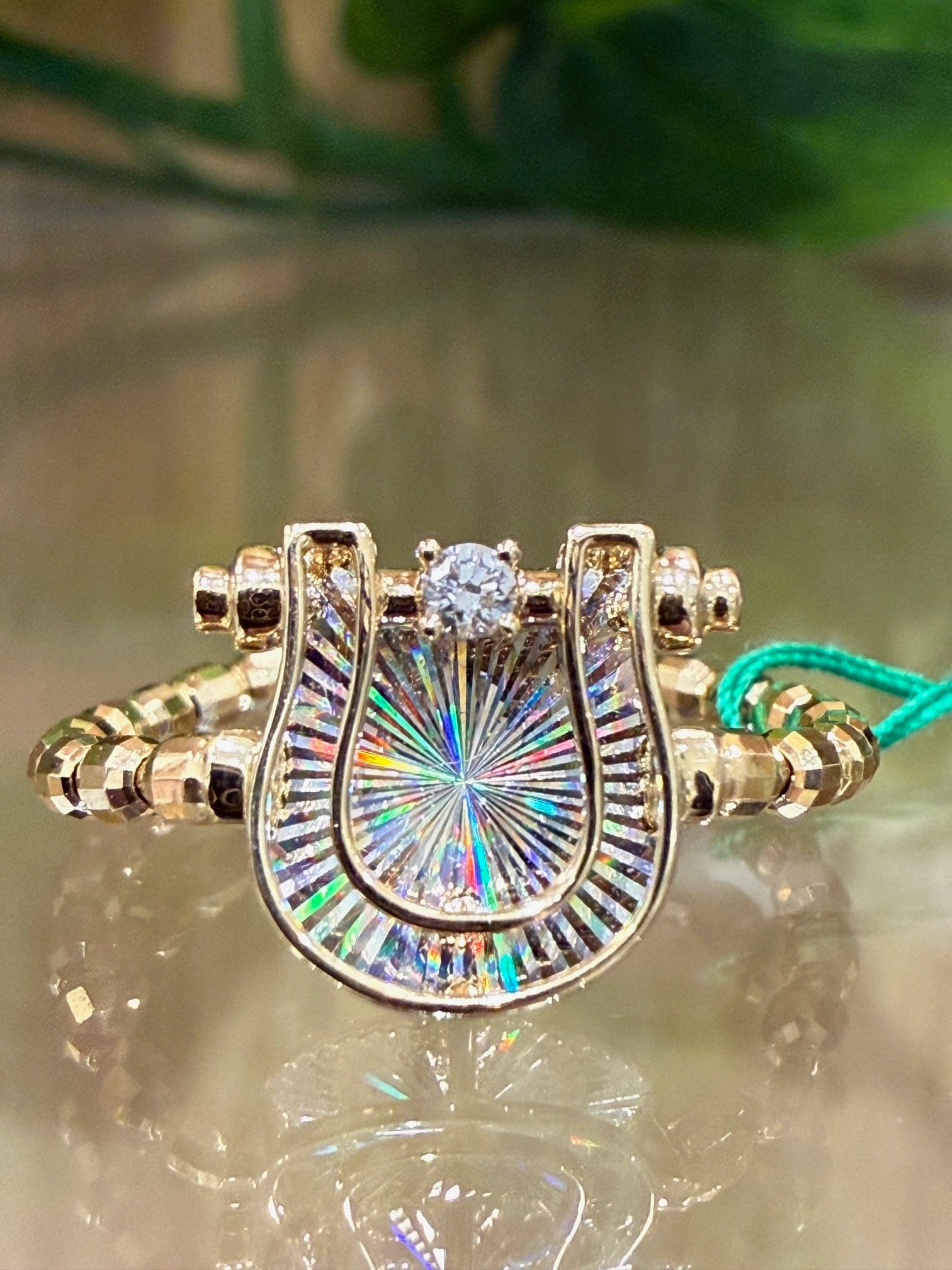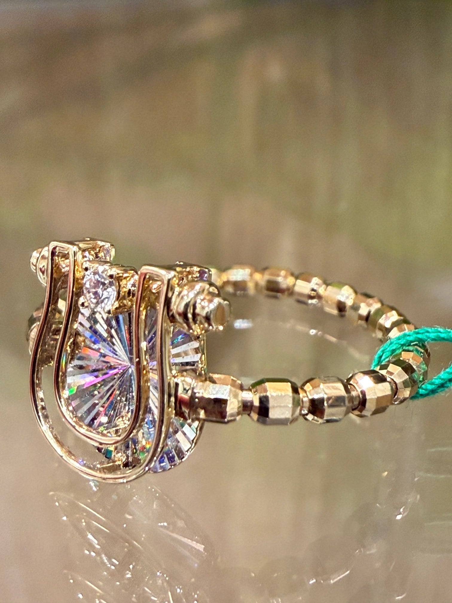 こちらはK18イエローゴールドのレインボーカッティングのホースシュー(馬の蹄)モチーフのリングです。