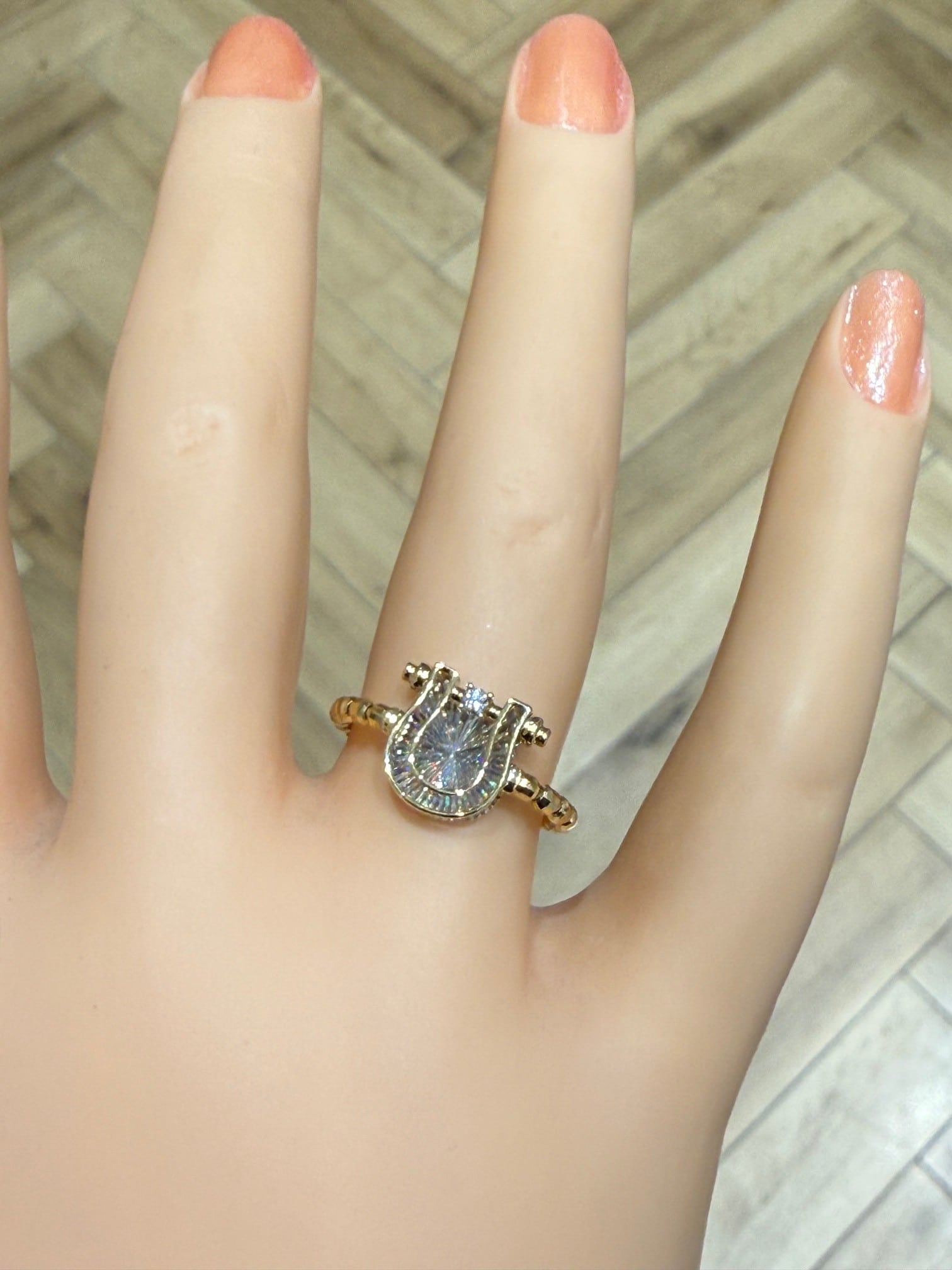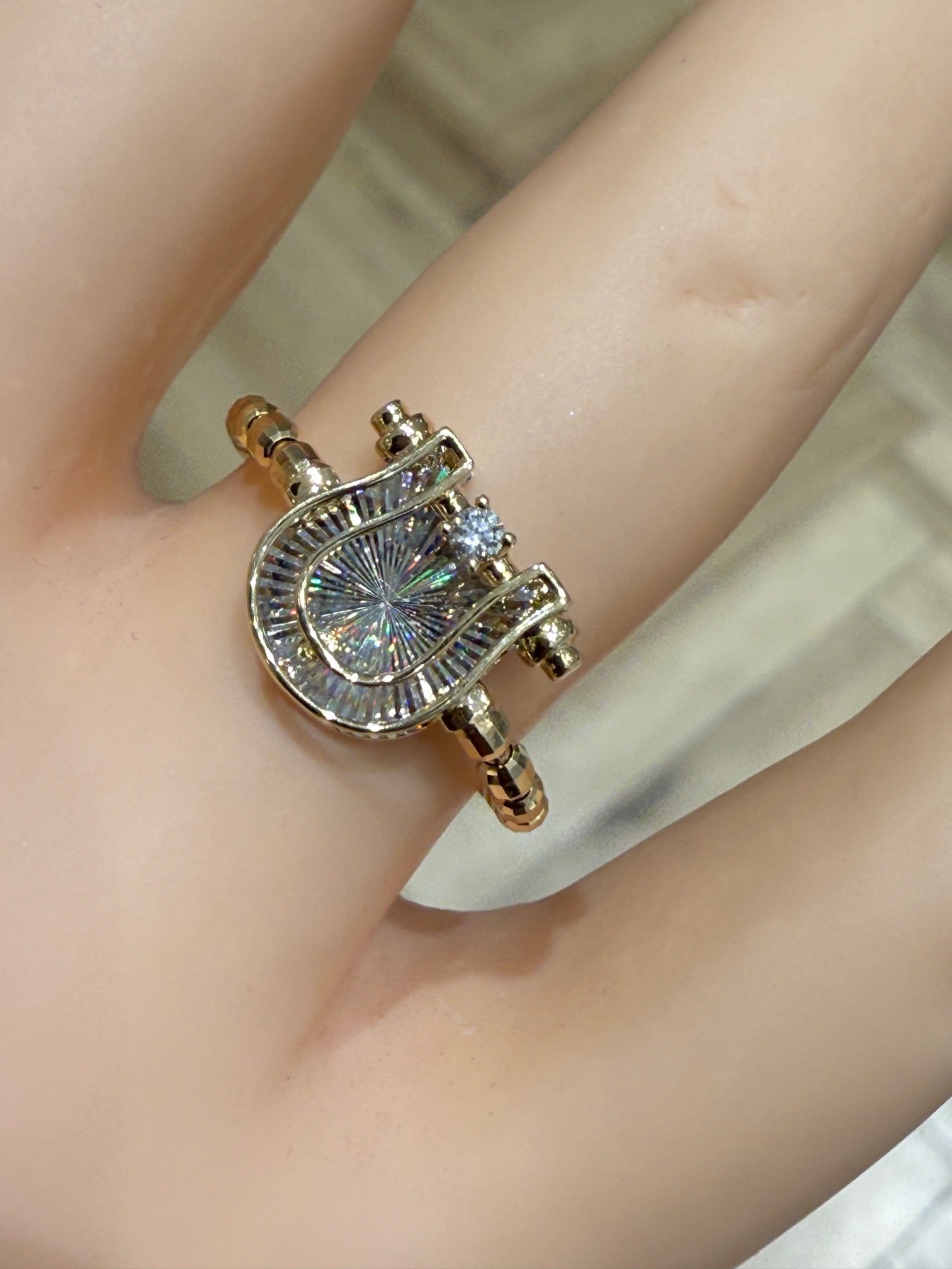【在庫分】K18YGレインボーカッティングダイヤモンドリング ホースシューモチーフ