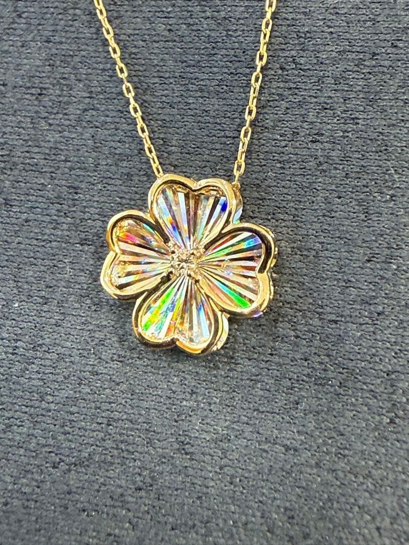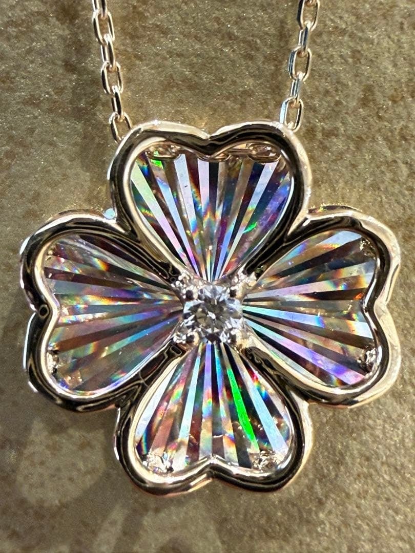こちらは四葉モチーフのレインボーカッティングのペンダントです。