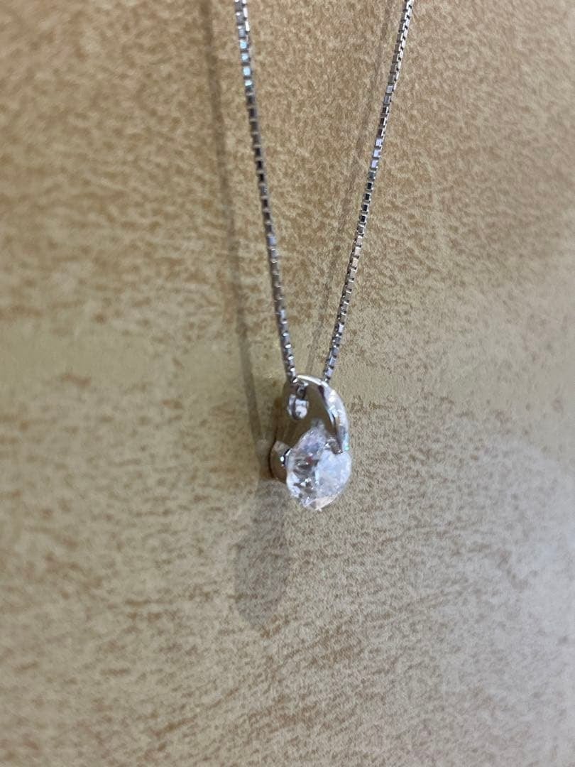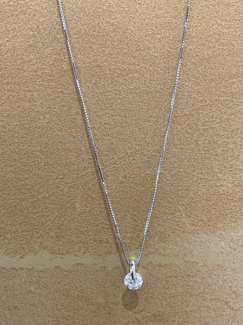 こちらはPtの素材で1ctアップのダイヤモンドをはさみ留めした定番のシンプルデザインのペンダントです。