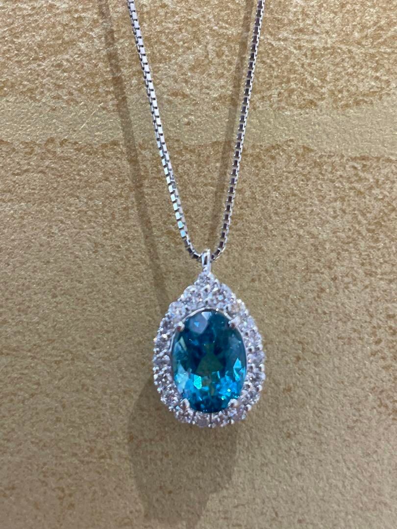 こちらはブルーの色味が綺麗なアパタイトのペンダントです。